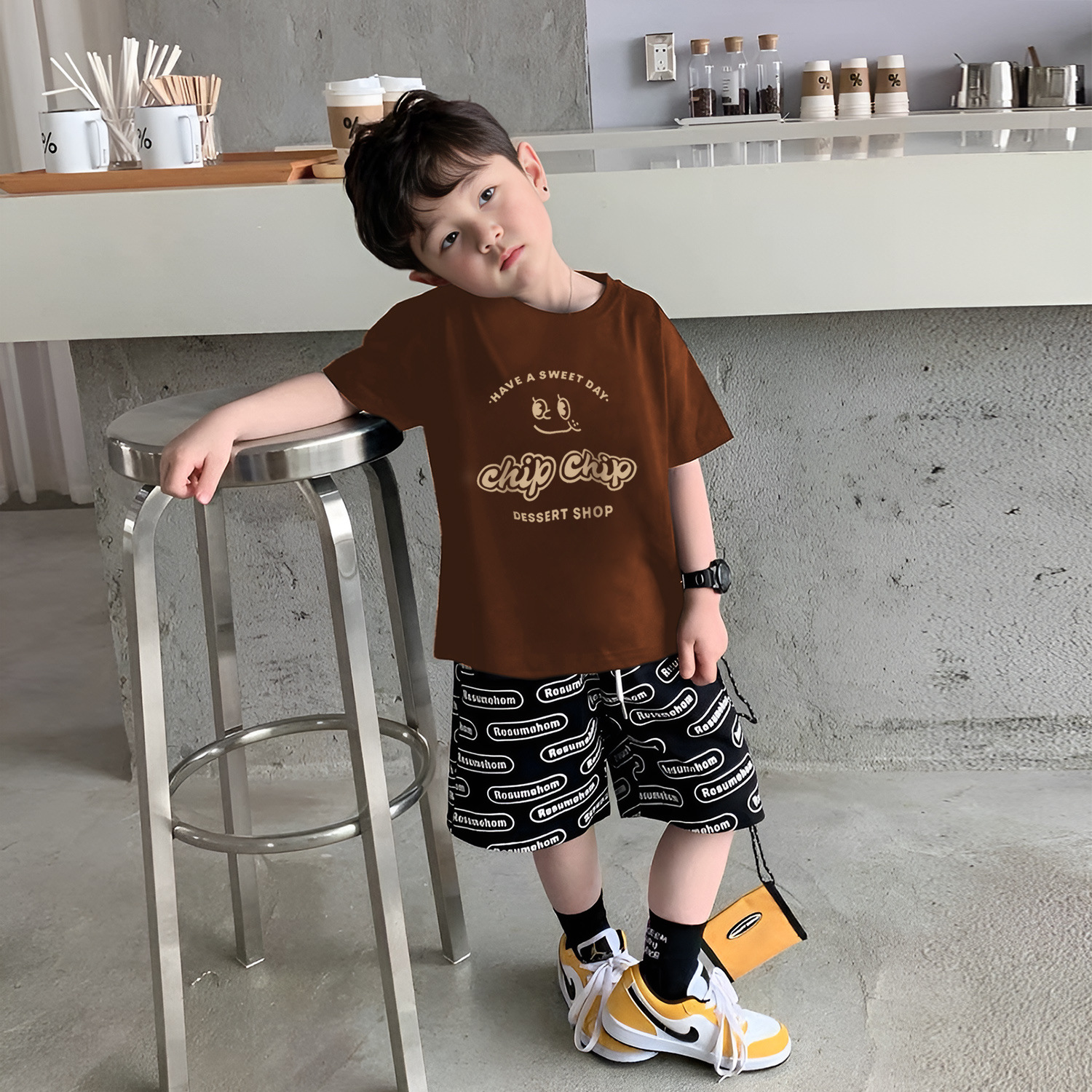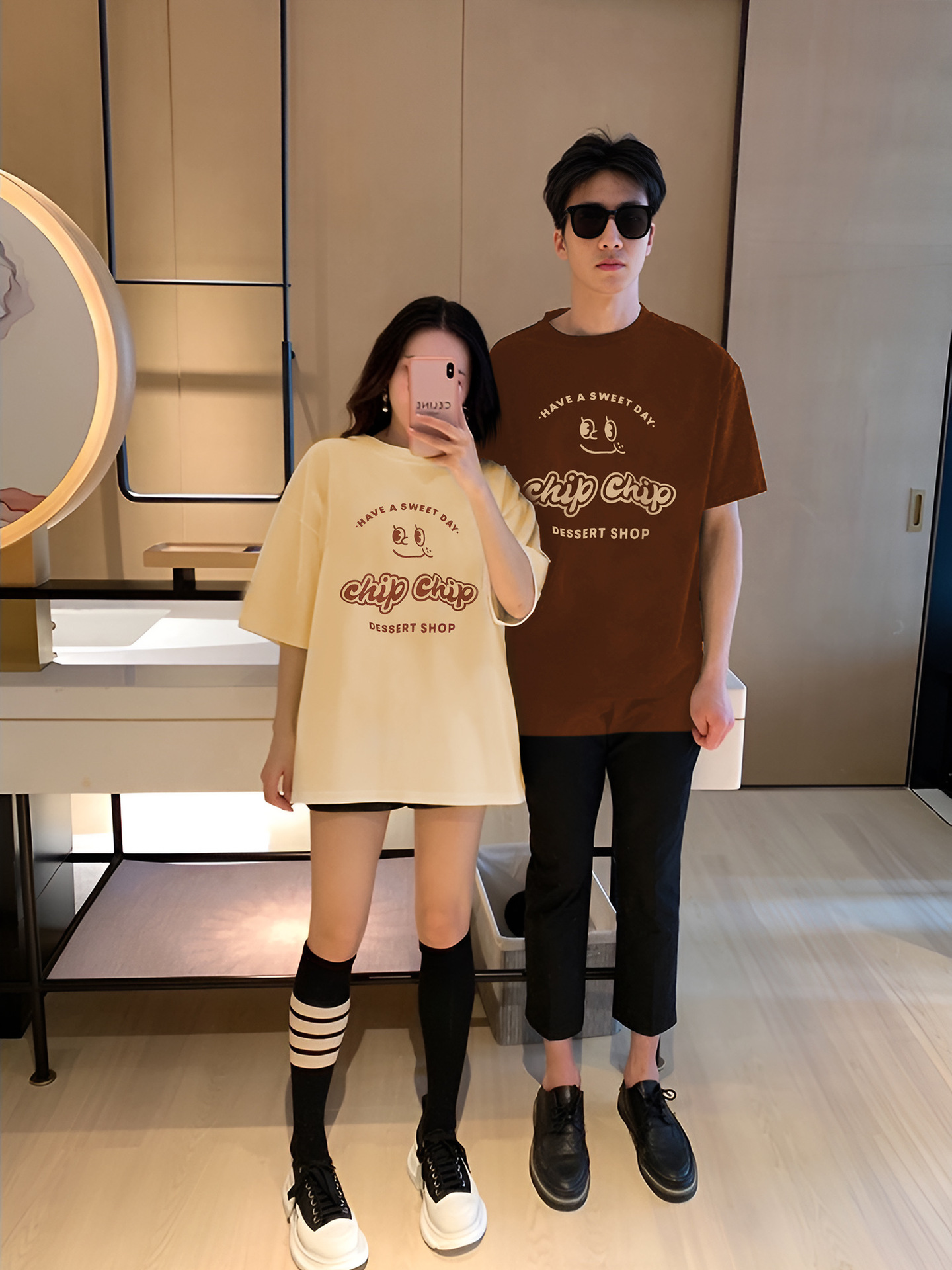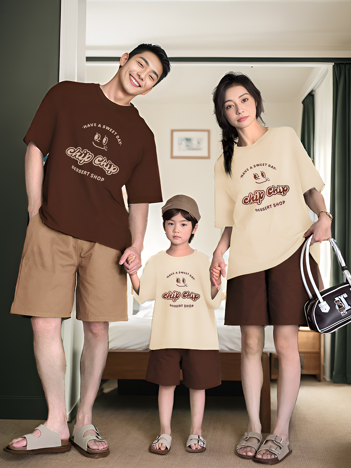 【F144】日系笑臉字母全家福親子短袖上衣(2色)