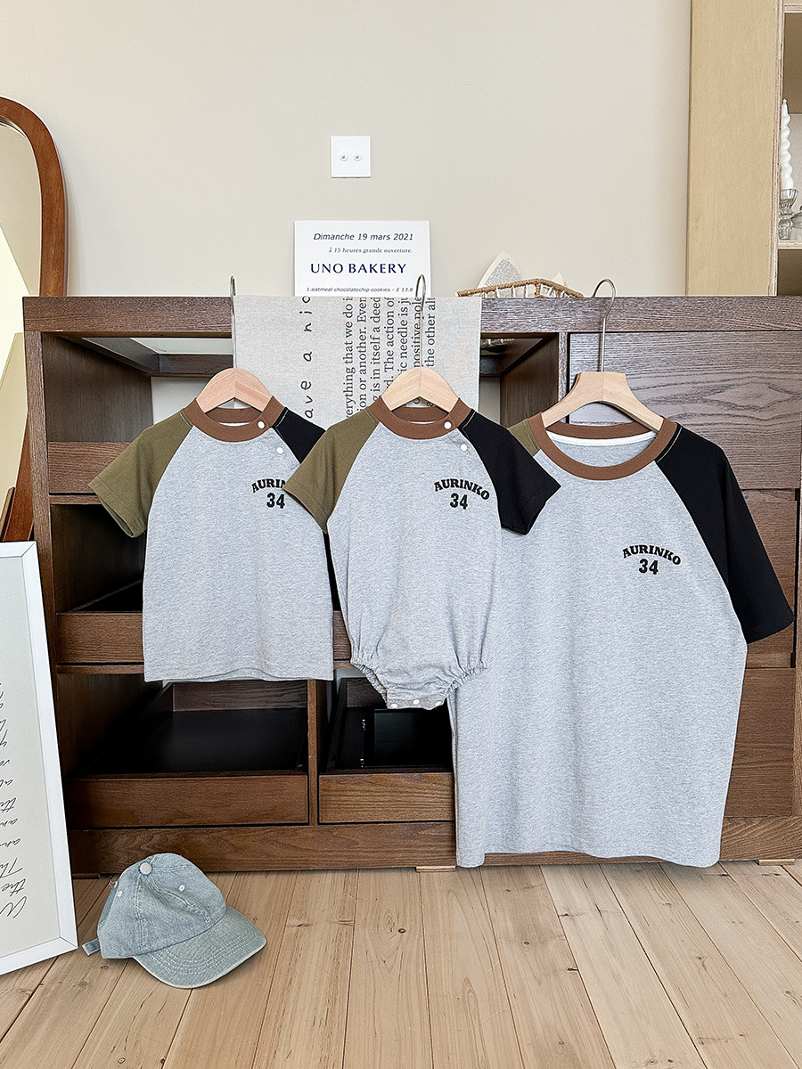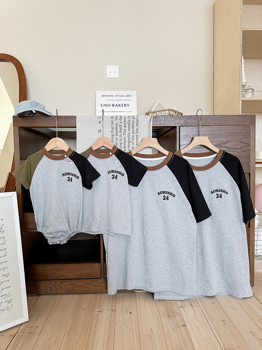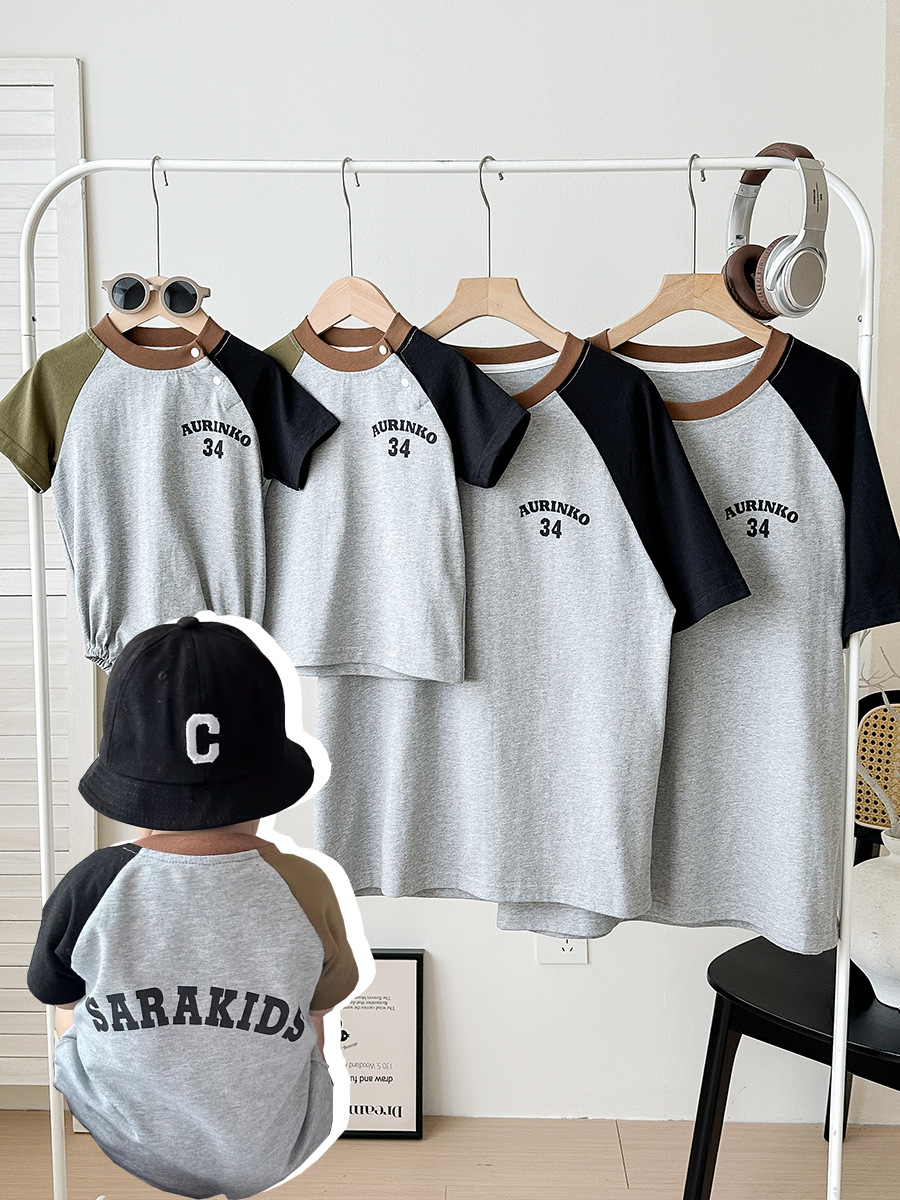 【F153】日系撞色字母全家福親子短袖上衣(1色)