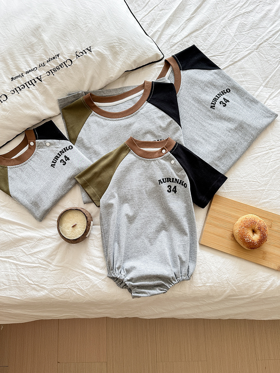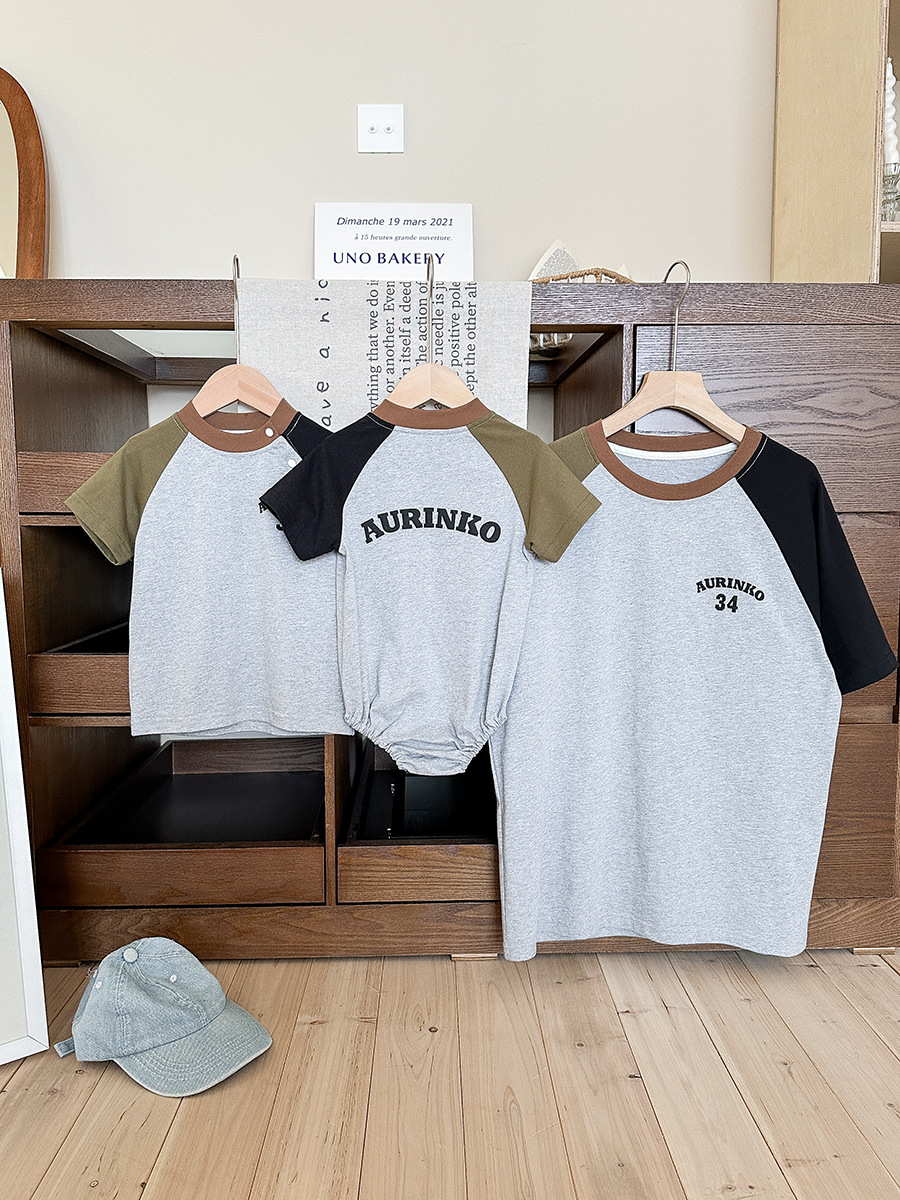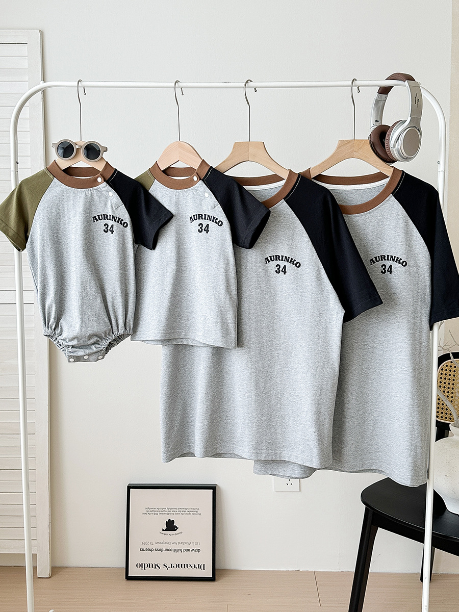 【F153】日系撞色字母全家福親子短袖上衣(1色)