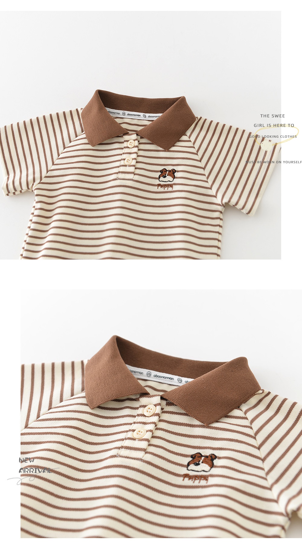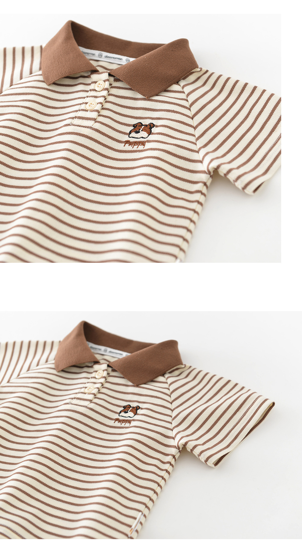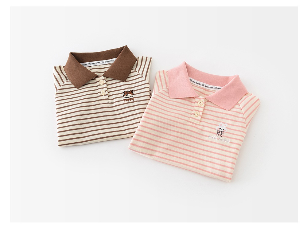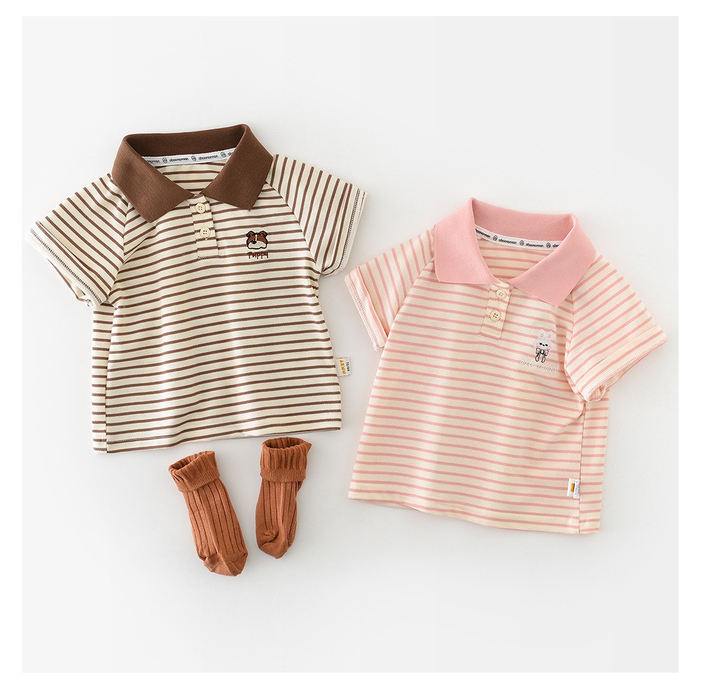 【BU171】韓版刺繡條紋兔狗短袖上衣(2色)