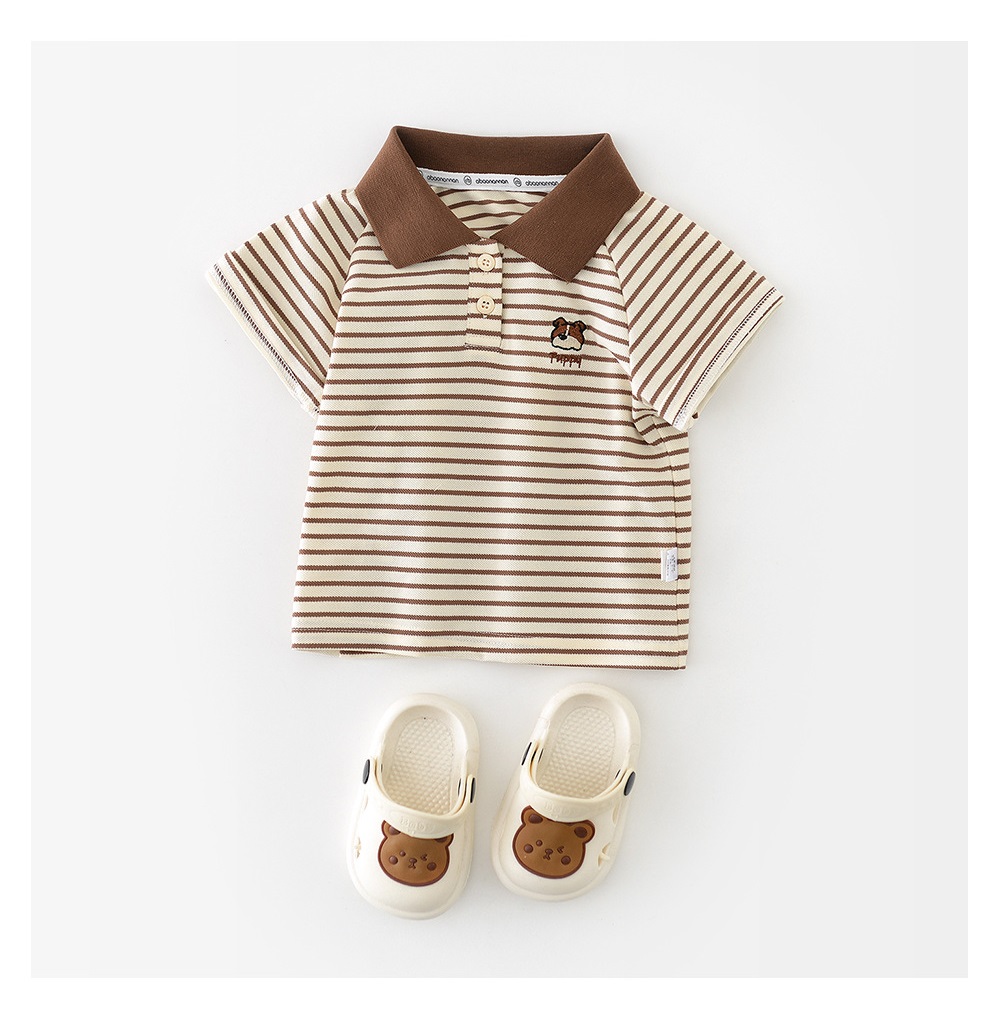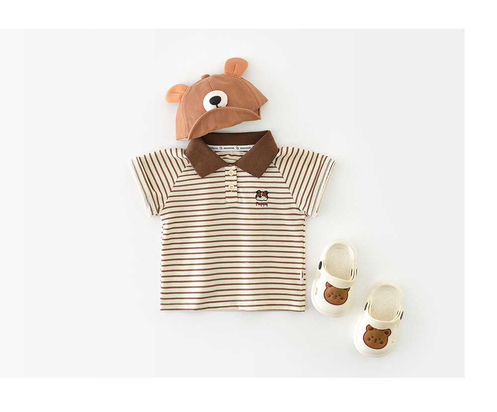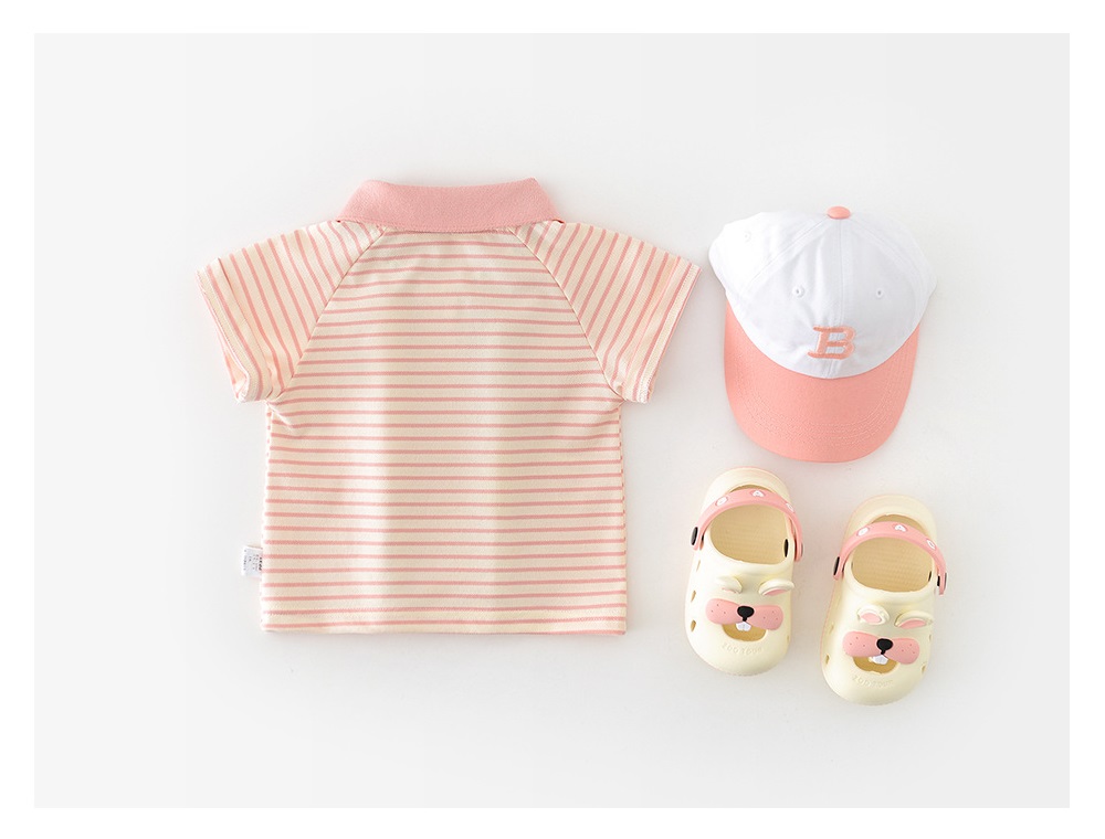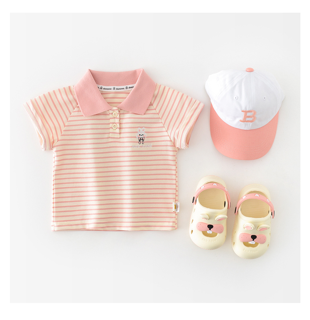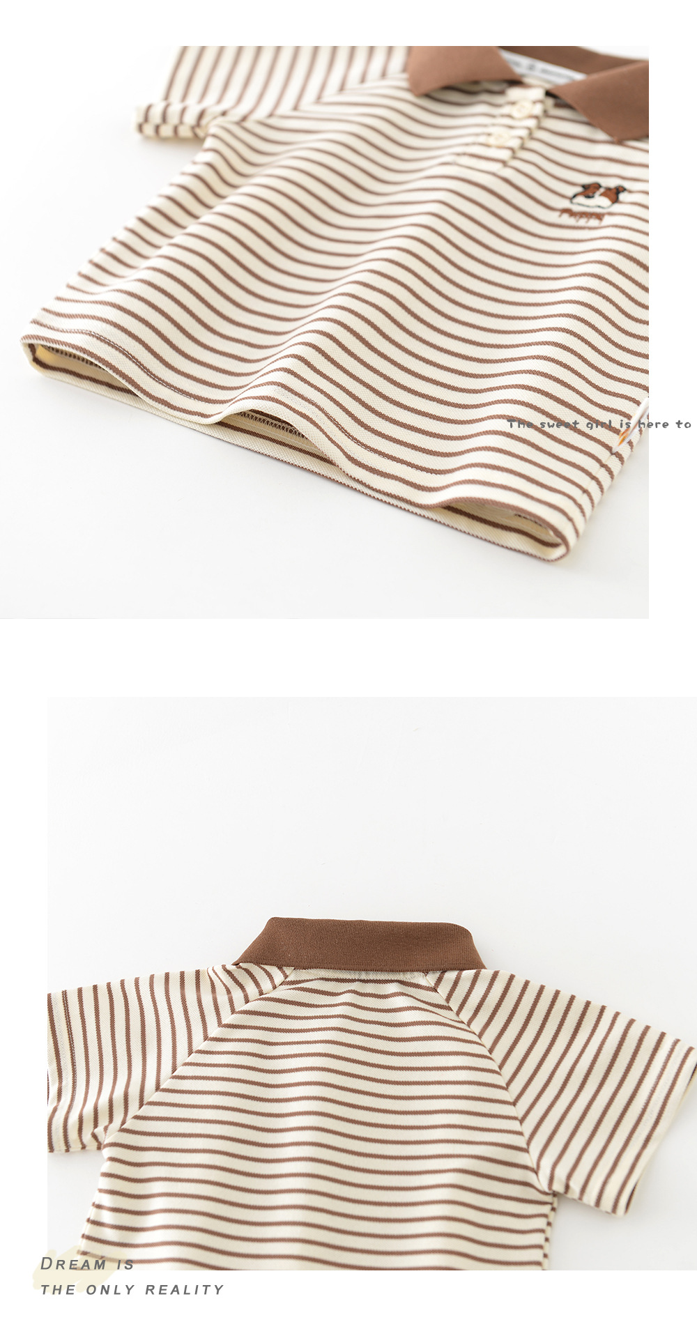 【BU171】韓版刺繡條紋兔狗短袖上衣(2色)