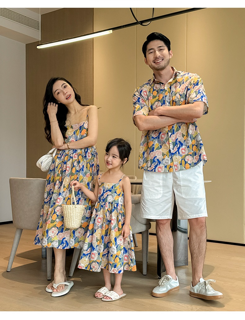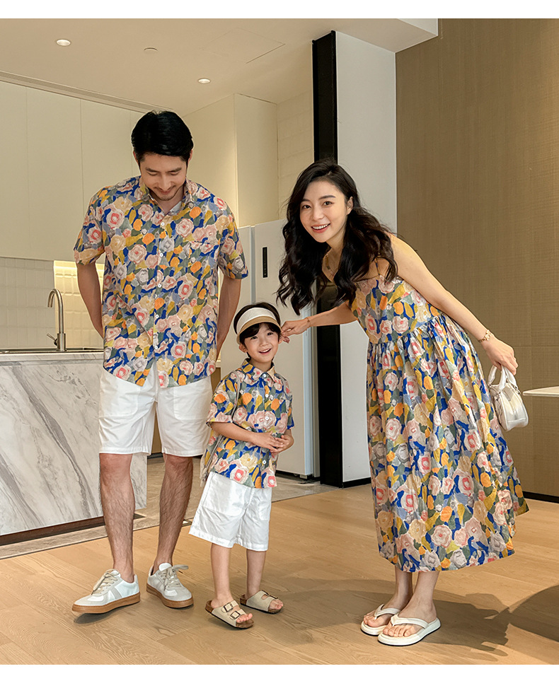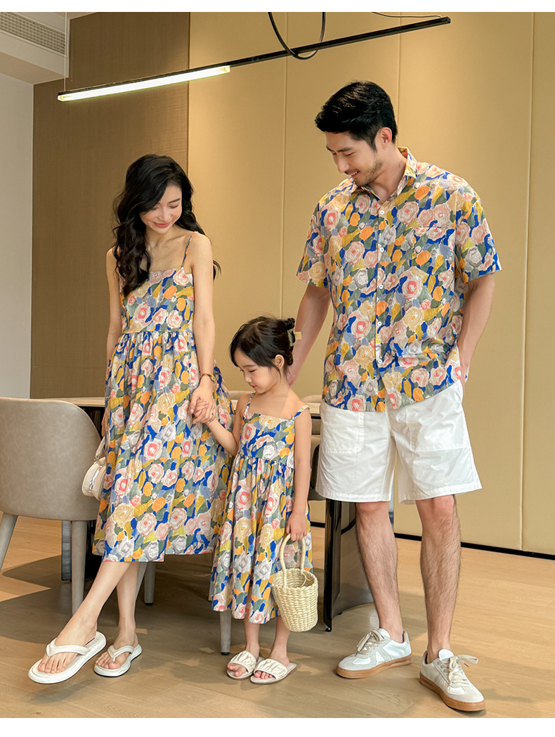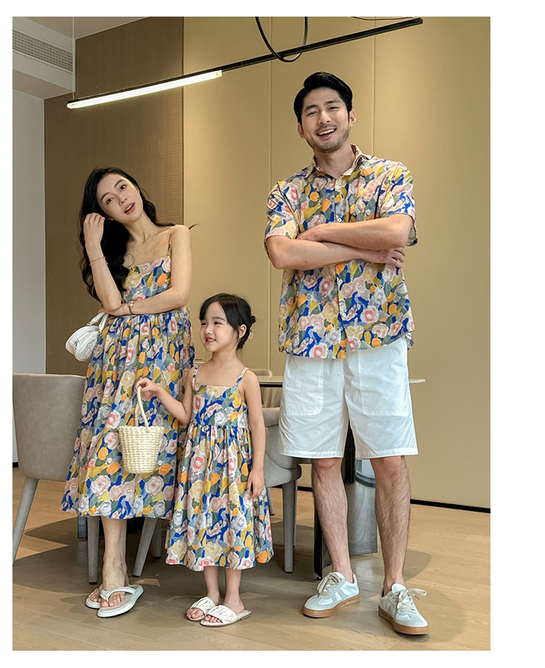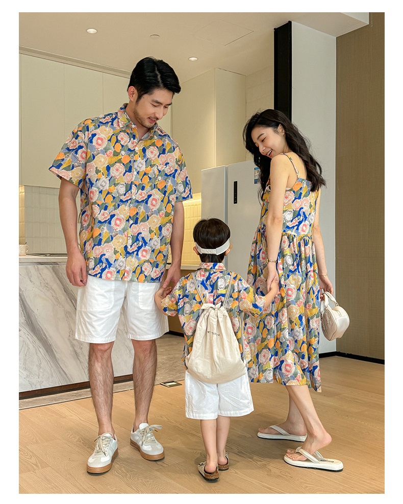 【F160】日系渡假水彩花全家福親子短袖襯衫洋裝(1色)