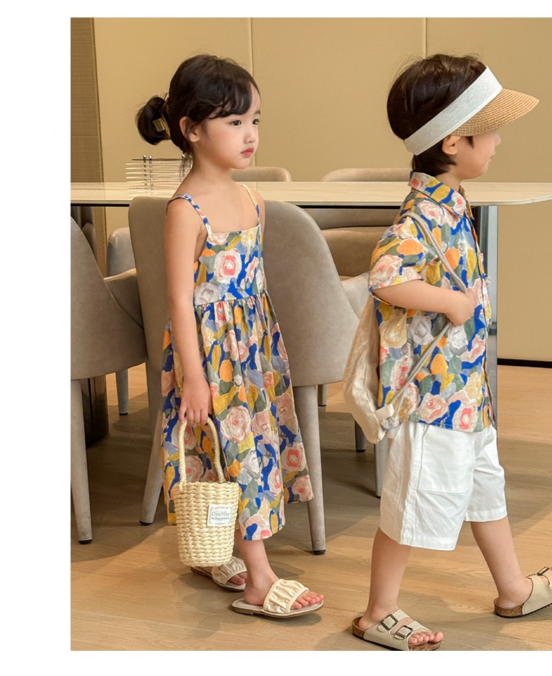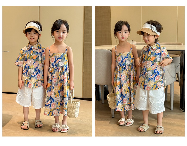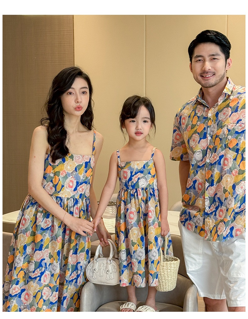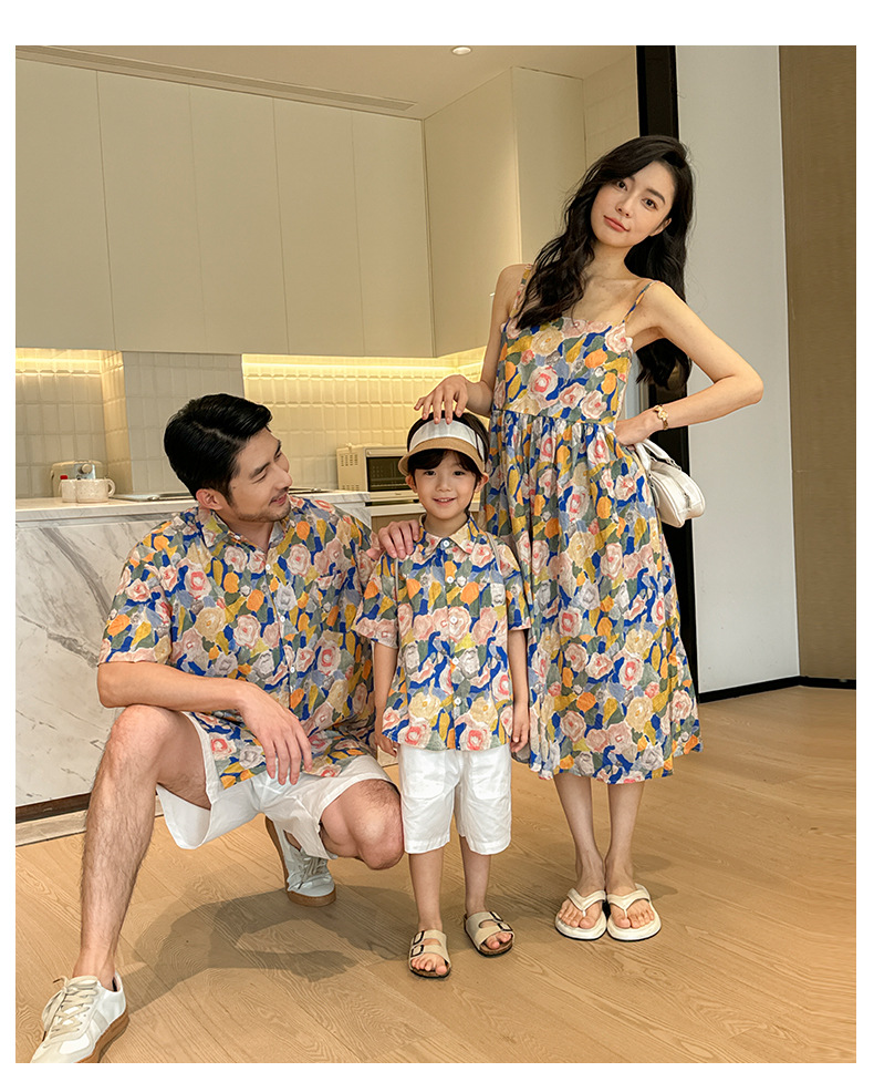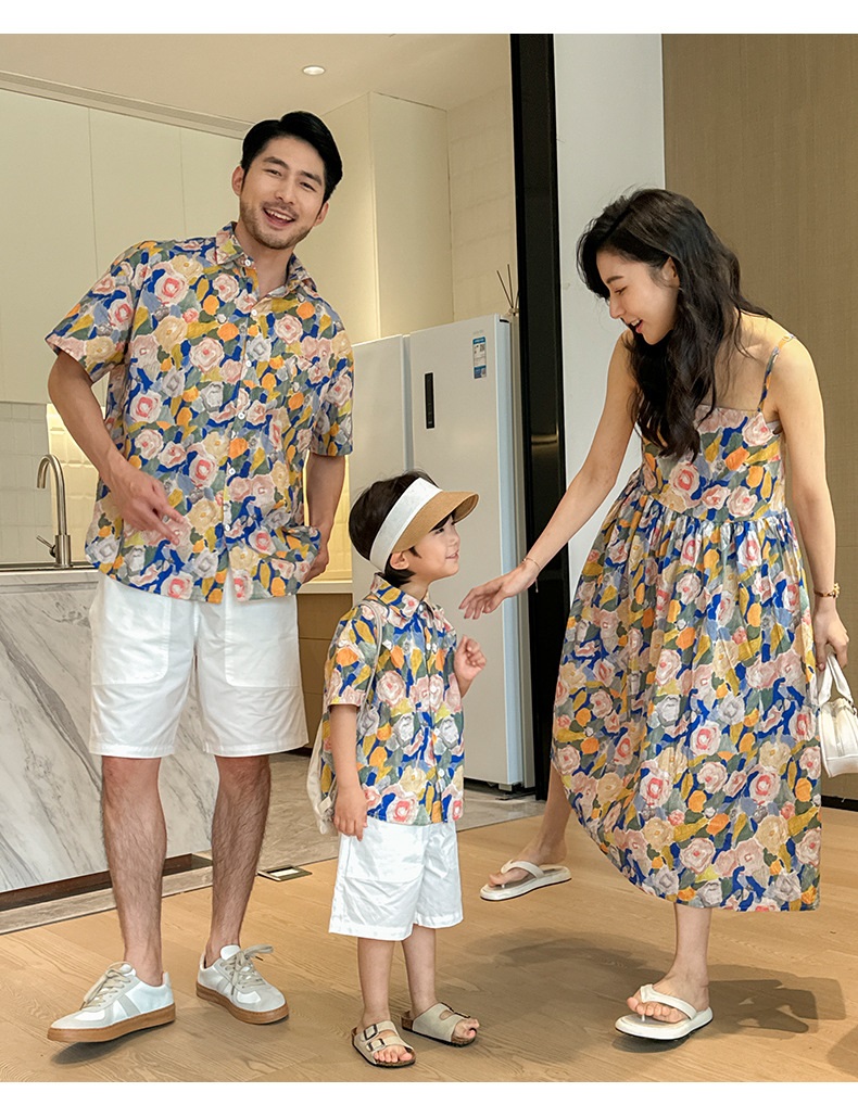 【F160】日系渡假水彩花全家福親子短袖襯衫洋裝(1色)