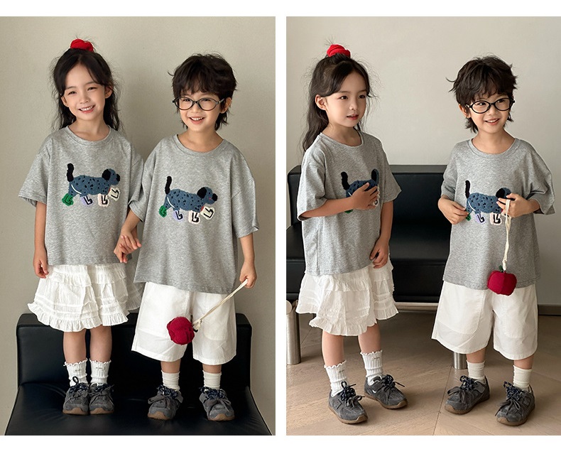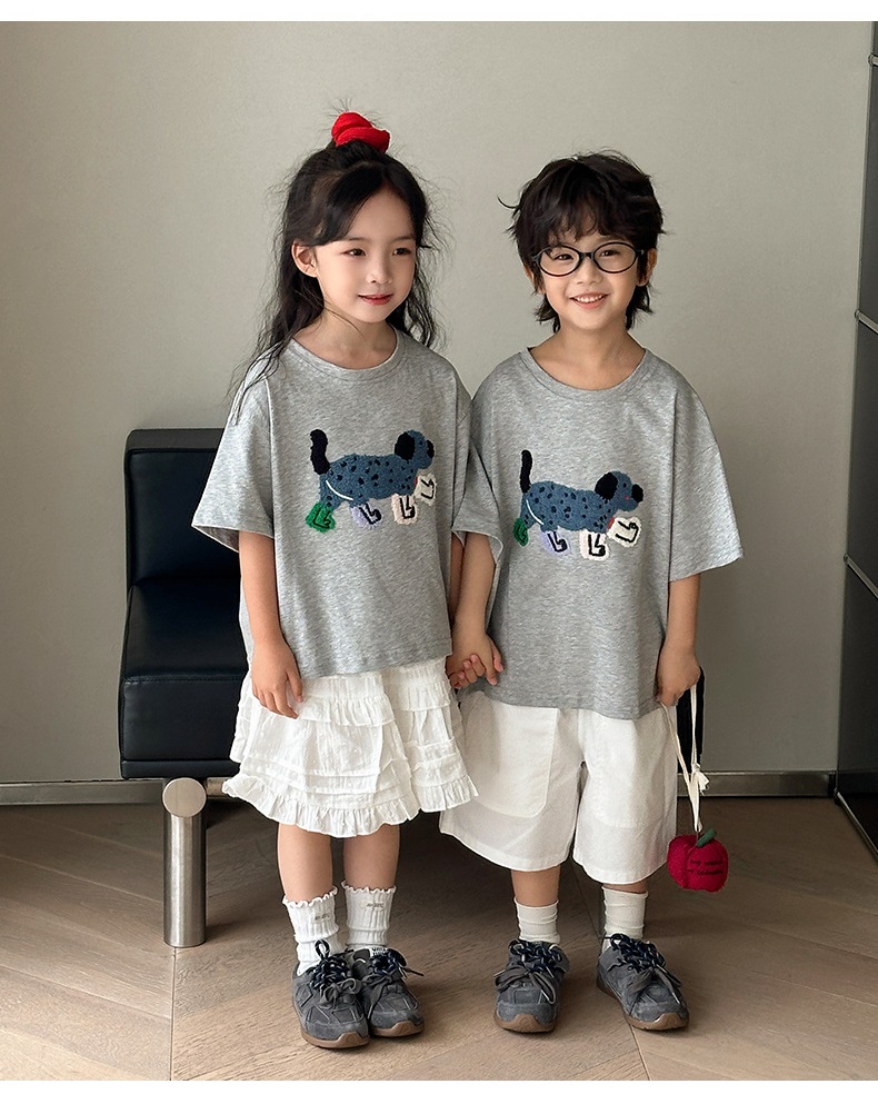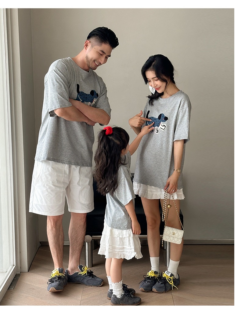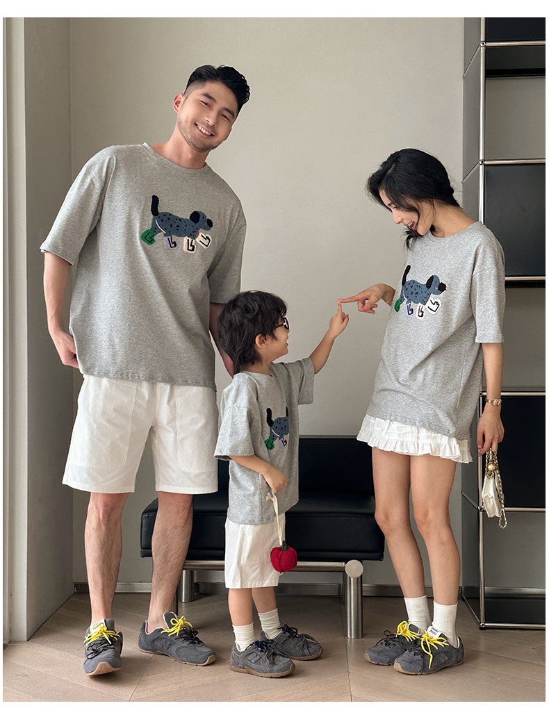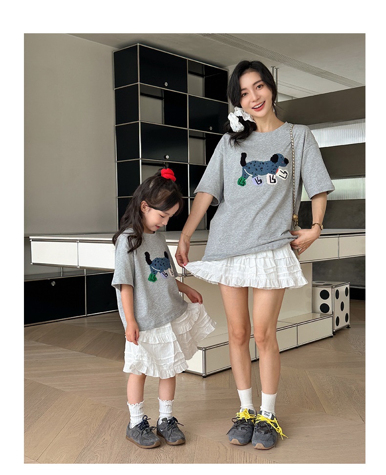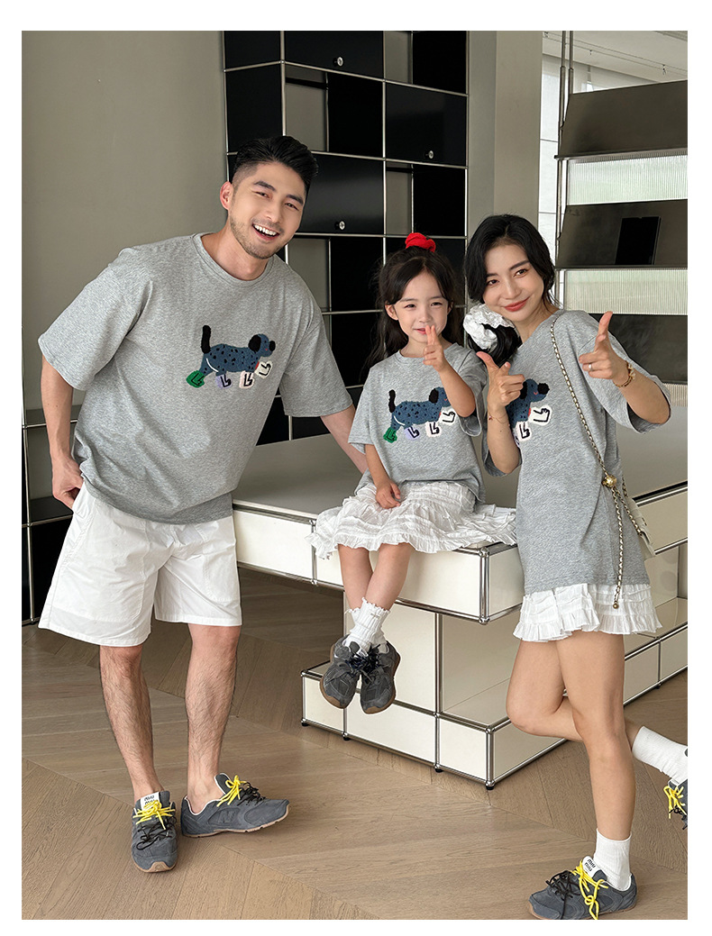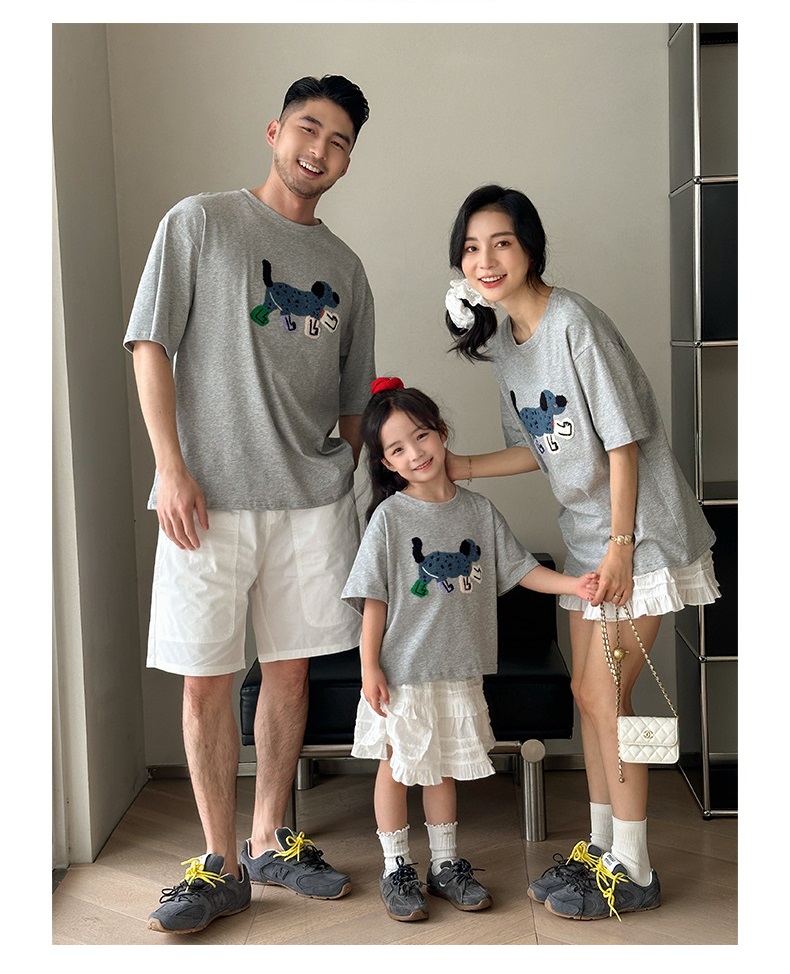 【F166】日系繡花狗狗全家福親子短袖上衣(1色)