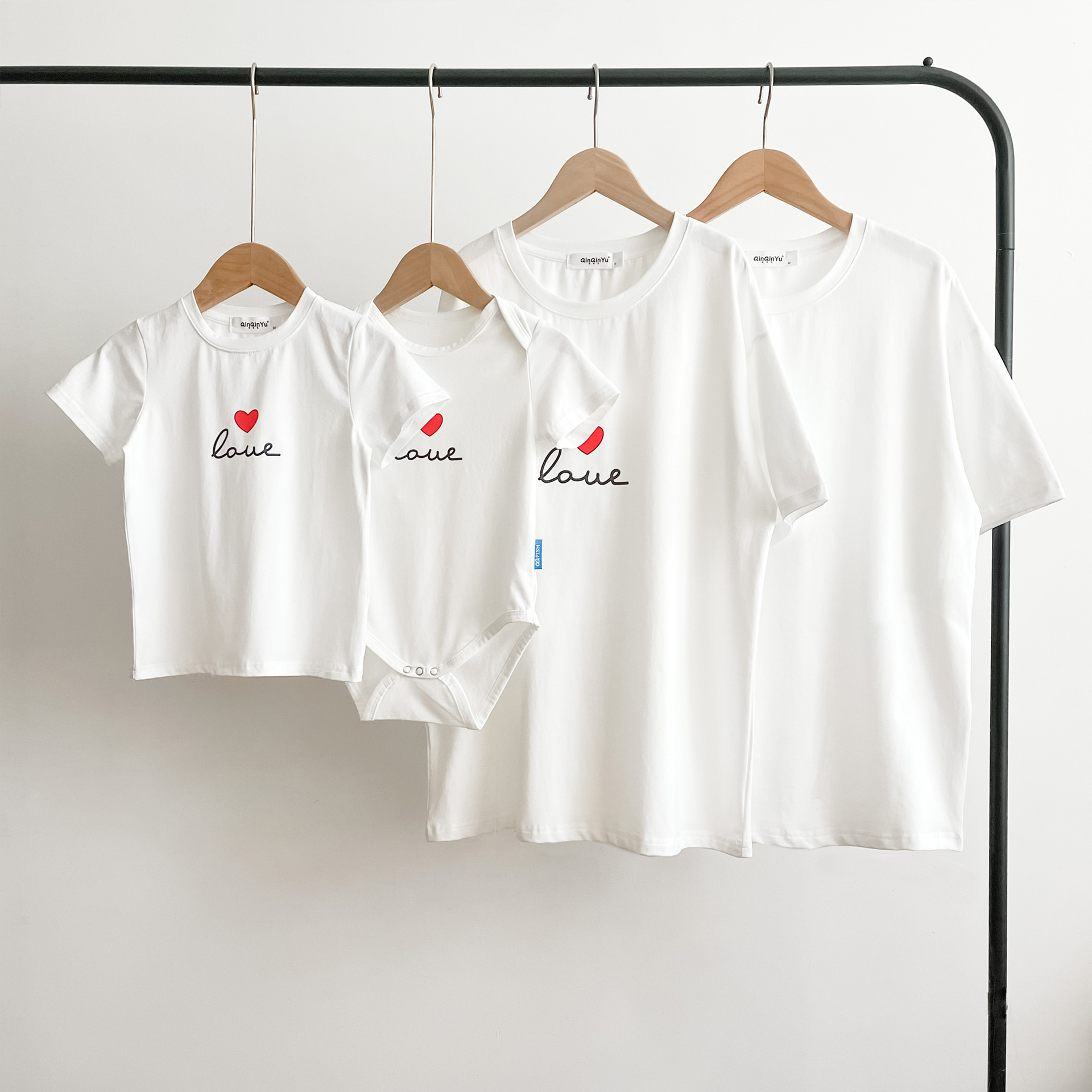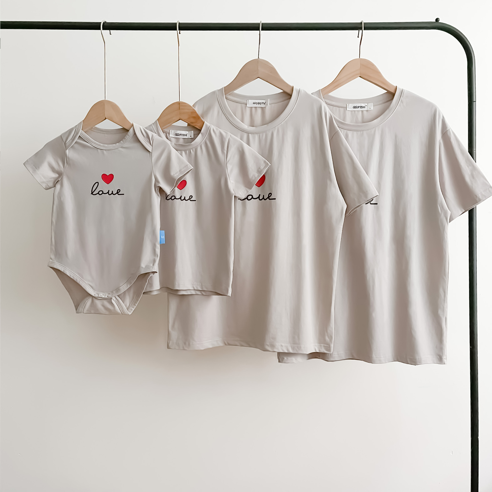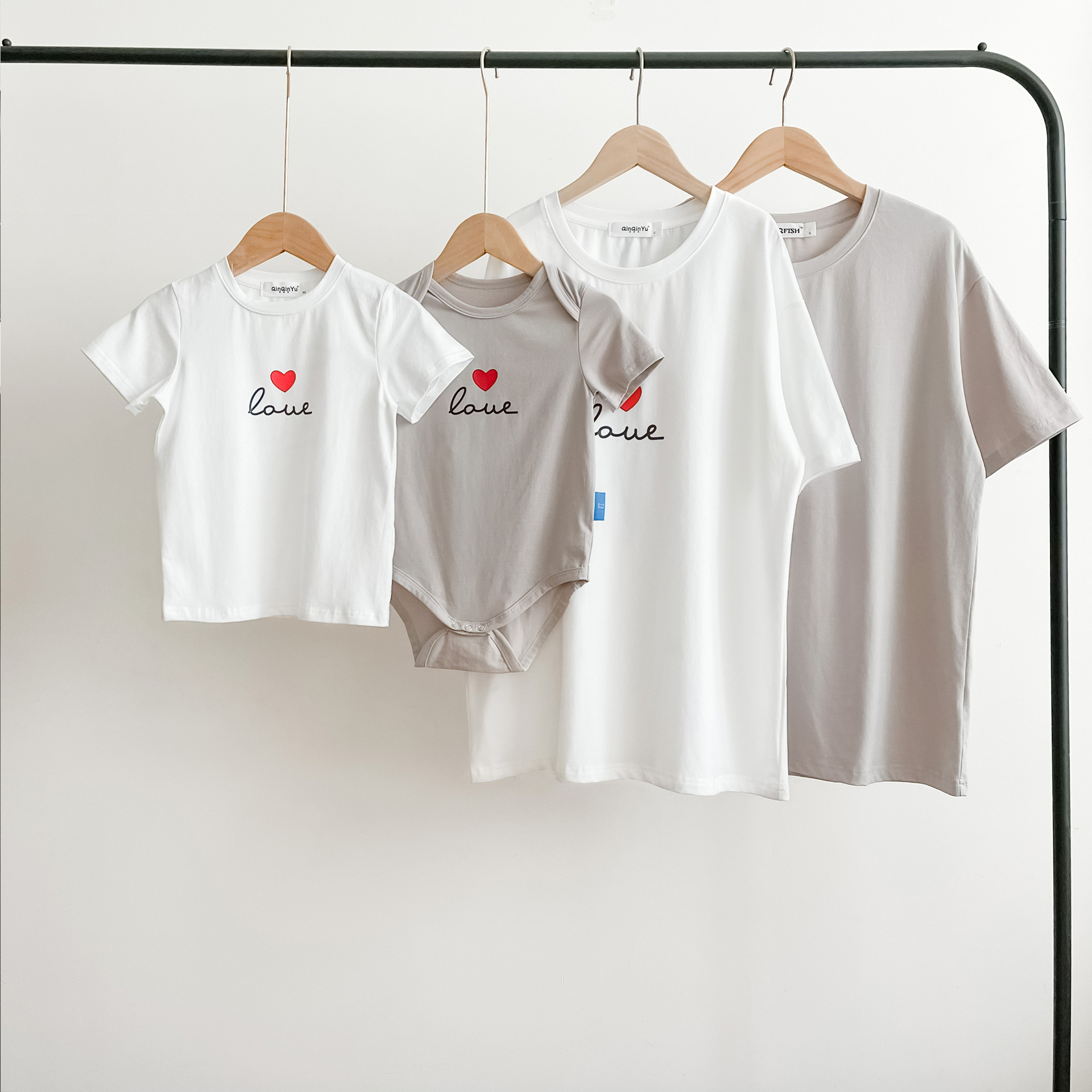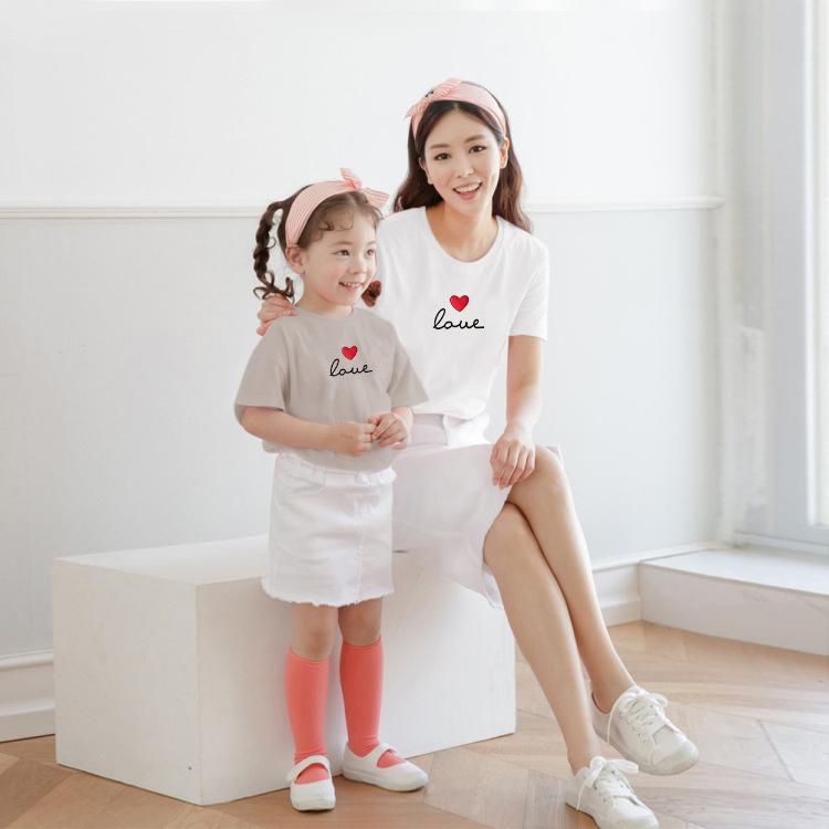 【F173】日系小寫字母愛心全家福親子短袖上衣(2色)