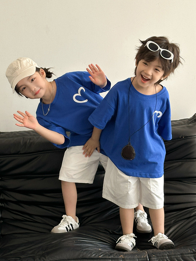 【F177】日系寶藍愛心全家福親子短袖上衣(1色)