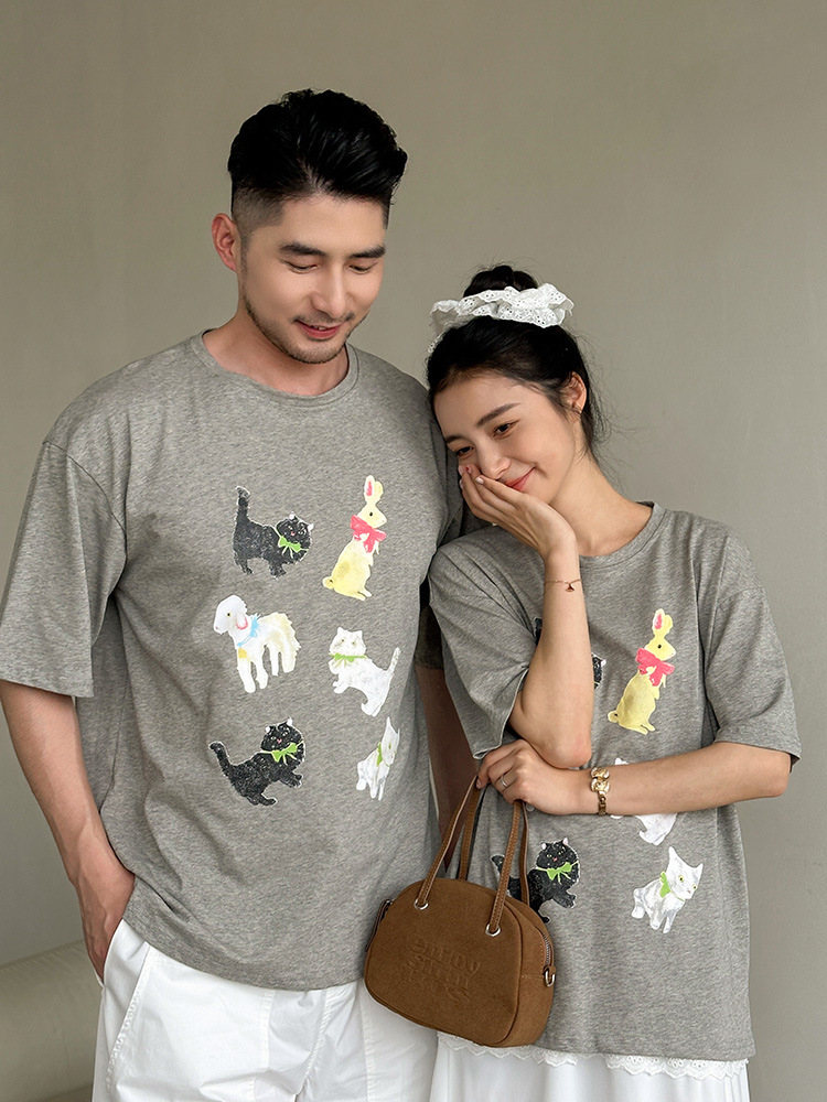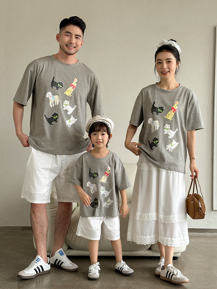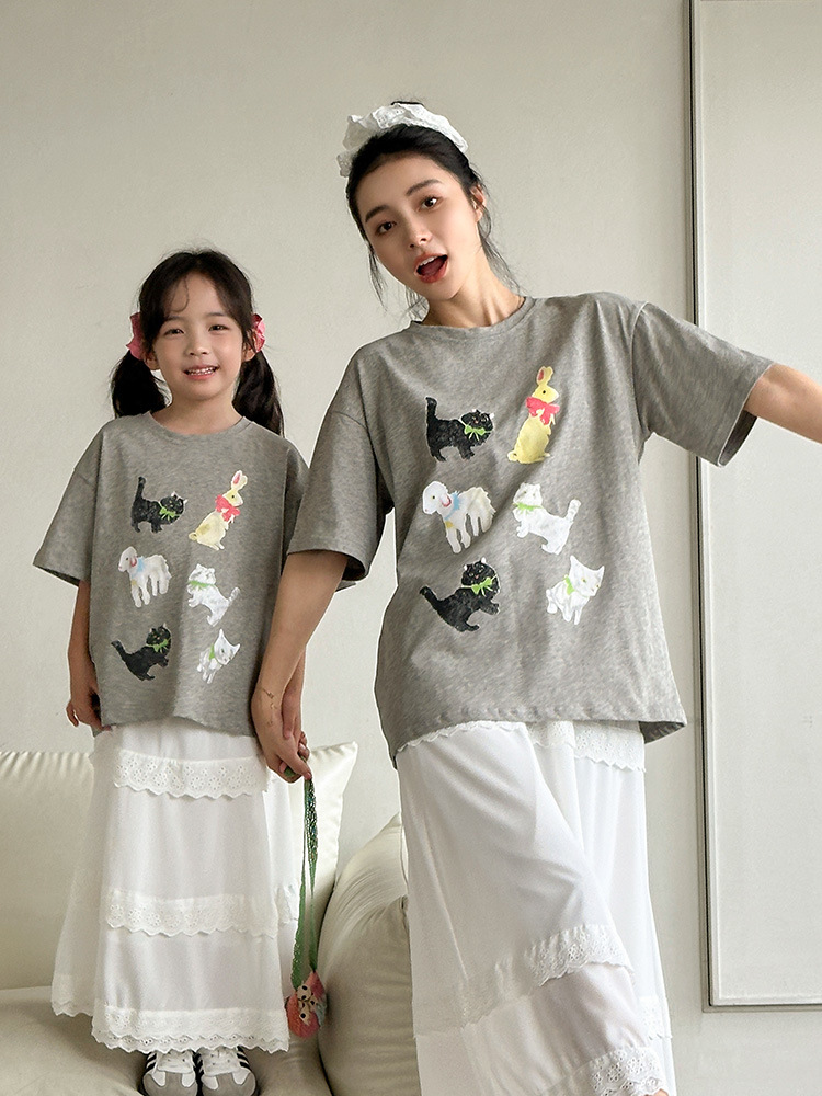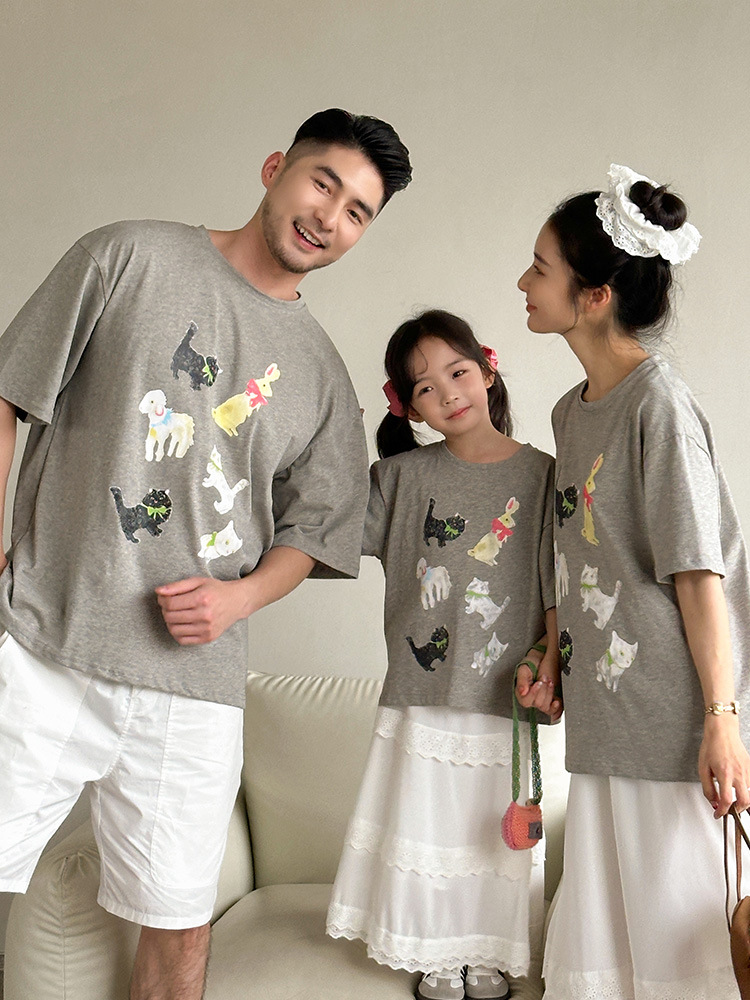 【F178】日系六隻小動物全家福親子短袖上衣(1色)