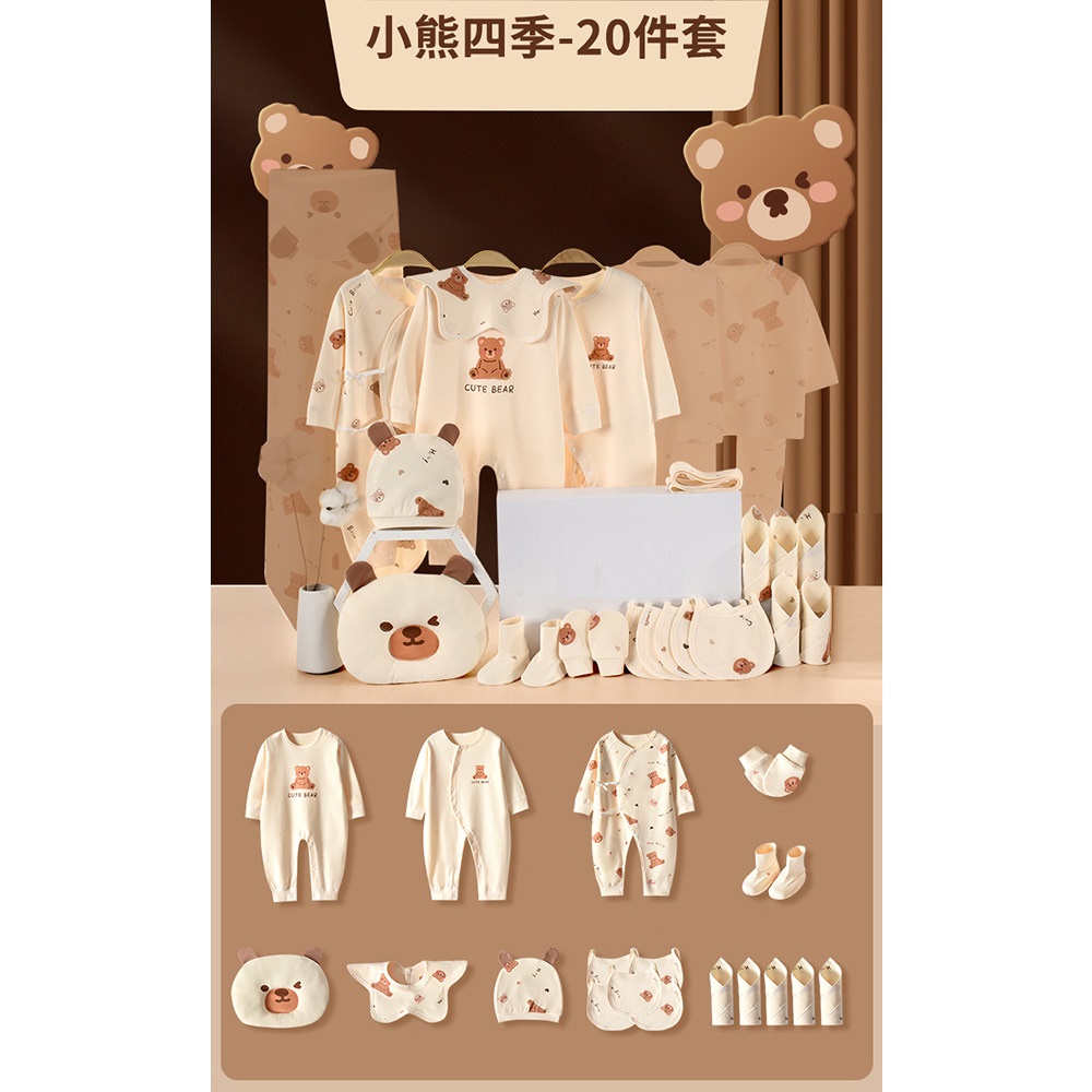 【四季款|NB026】軟萌小熊四季款26/22/20件套禮物箱大套組(米色)
