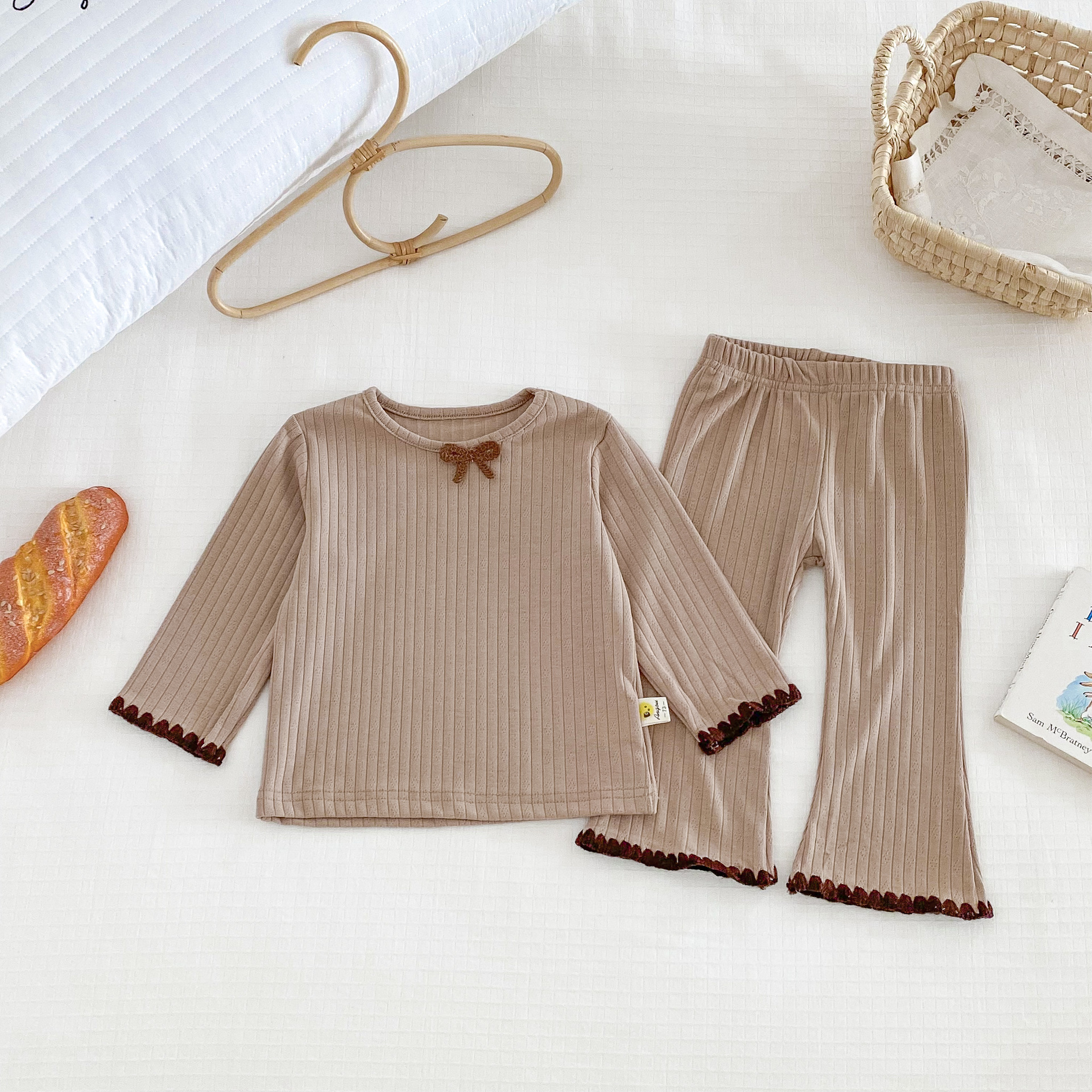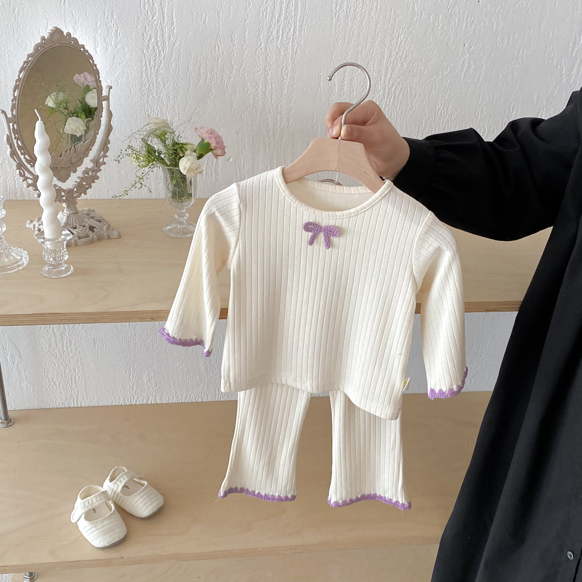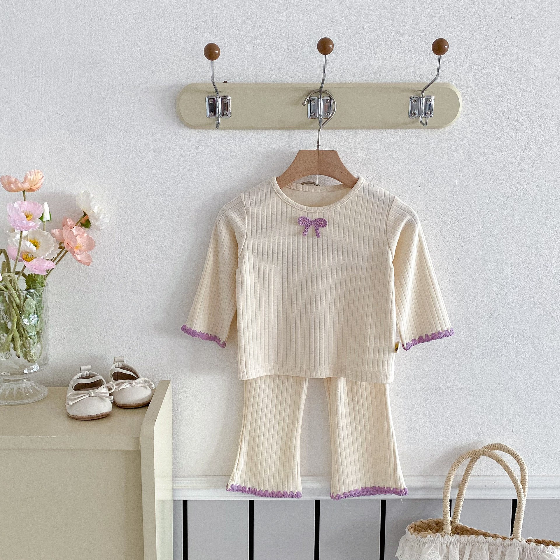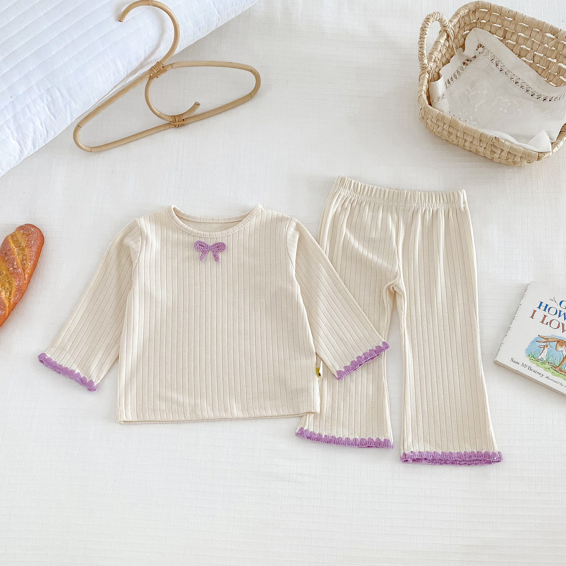 【BE143】日系小蝴蝶結花邊長袖長褲套裝(2色)