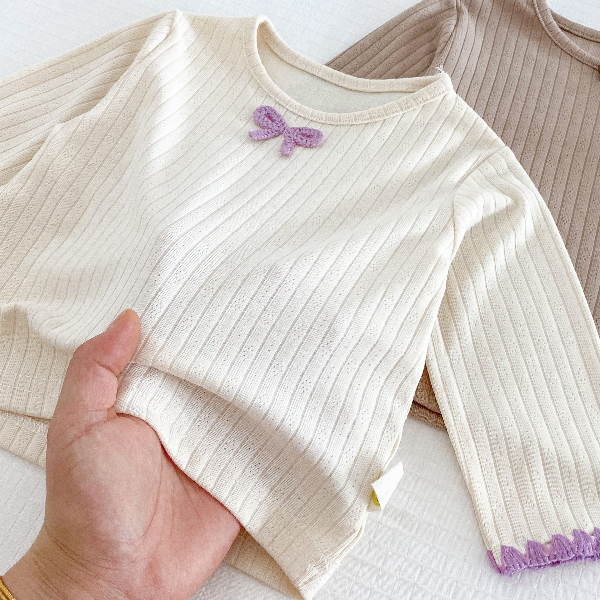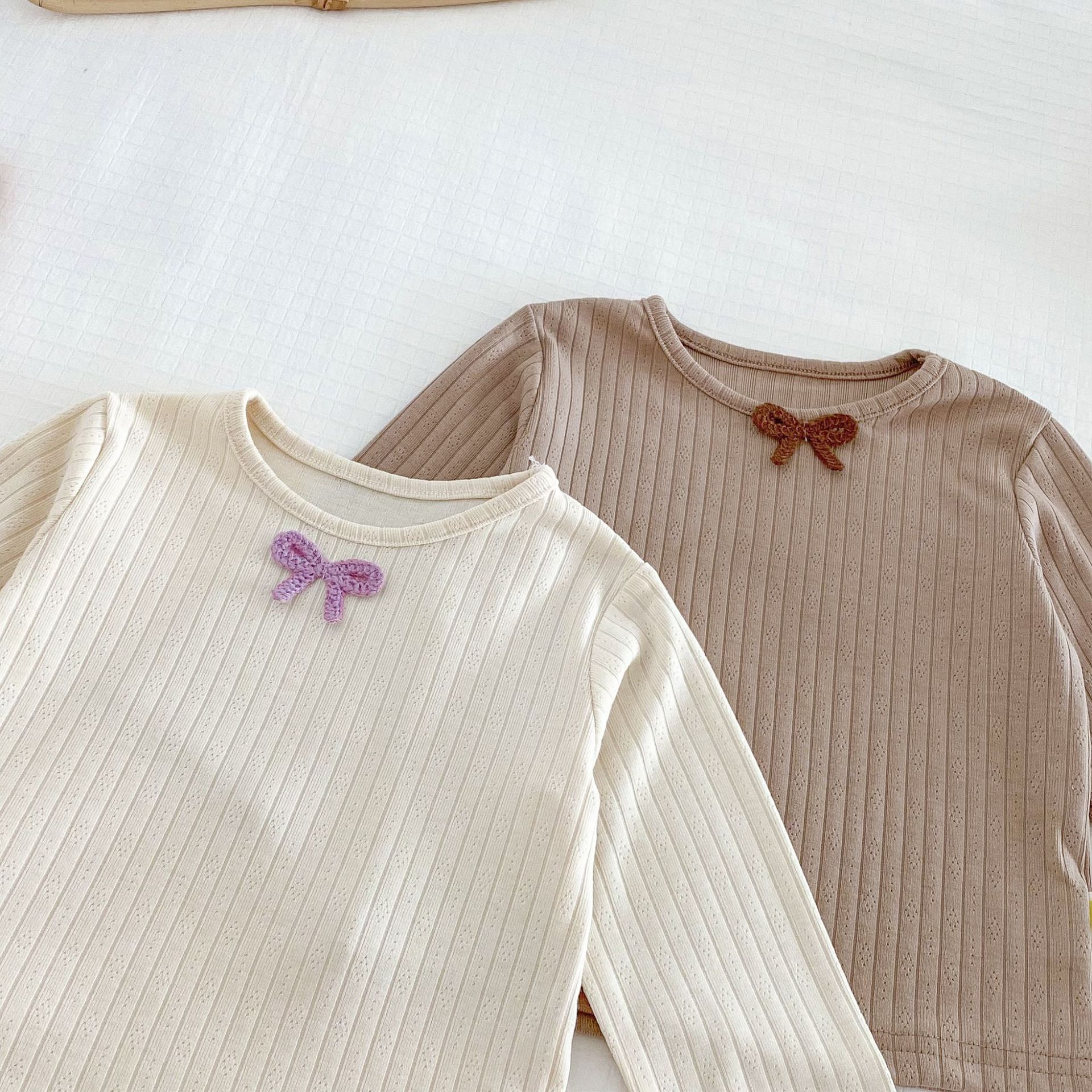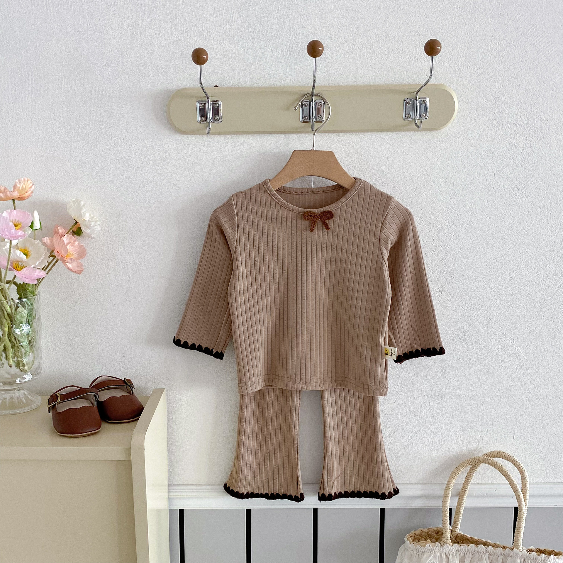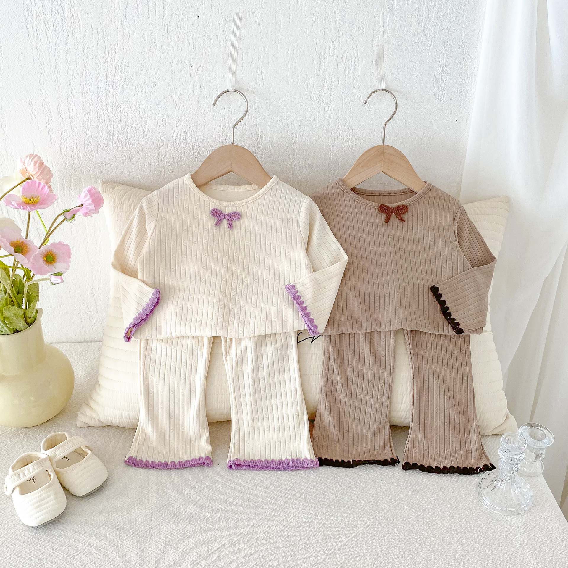 【BE143】日系小蝴蝶結花邊長袖長褲套裝(2色)