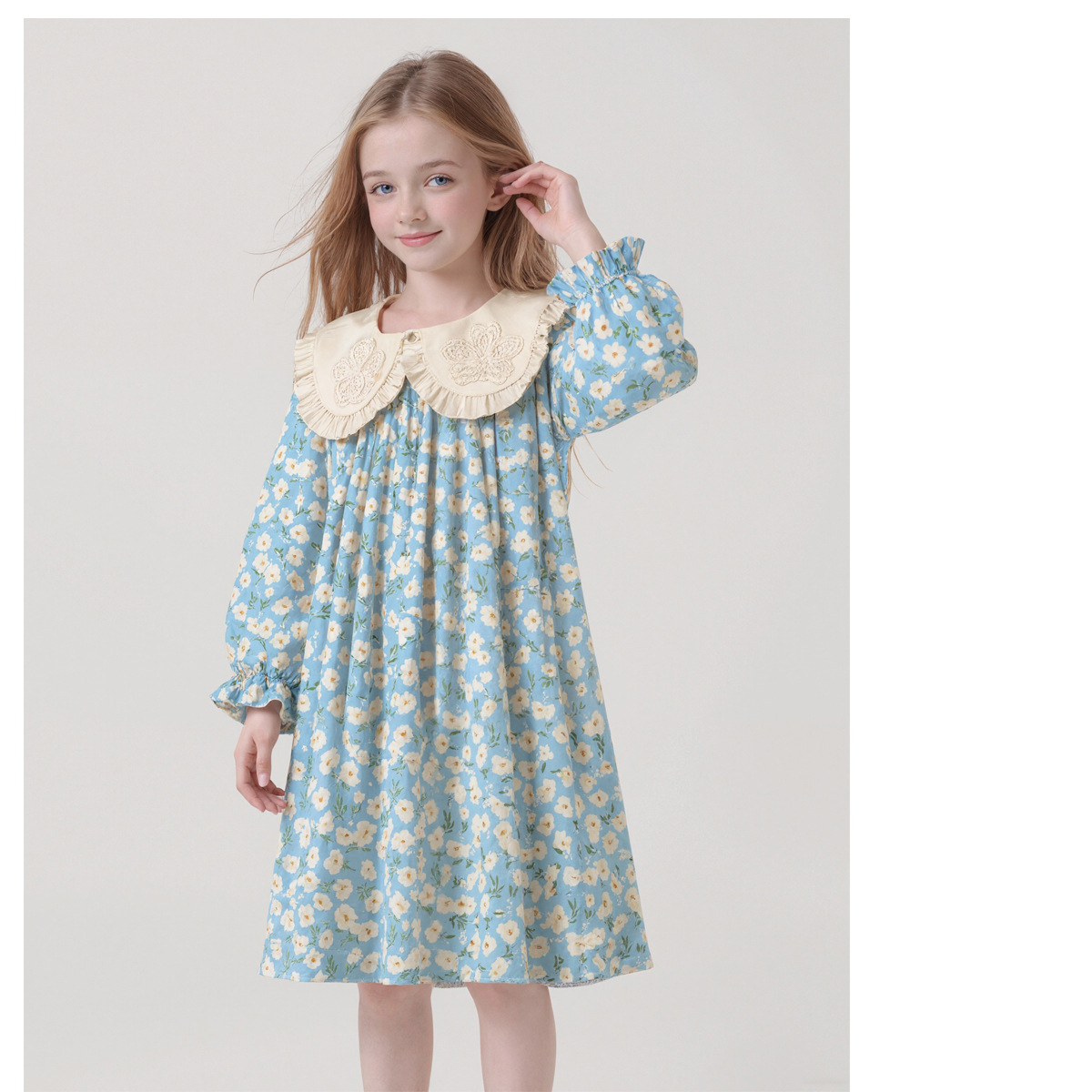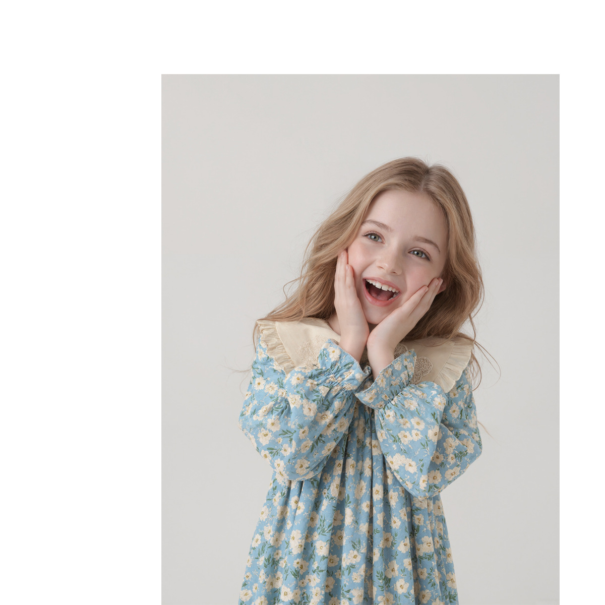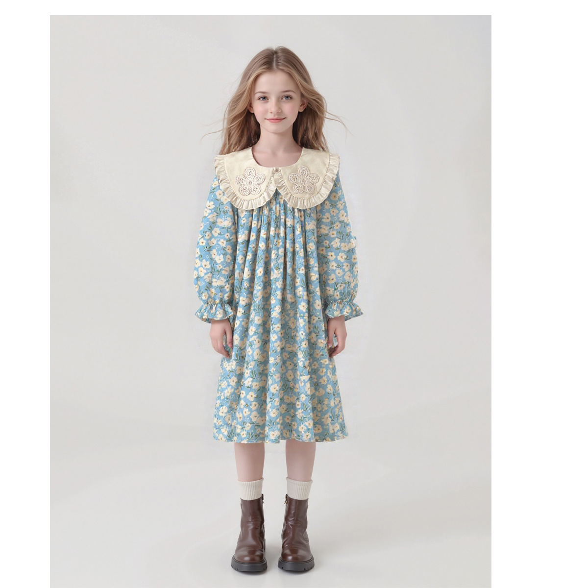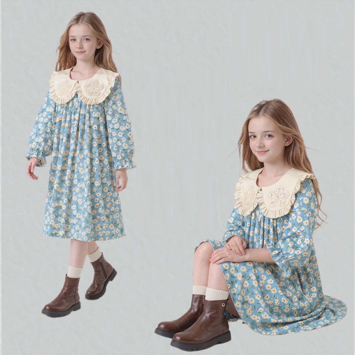 【BS283】韓版翻領蕾絲小花長袖包屁衣小洋裝(送髮箍)(1色)