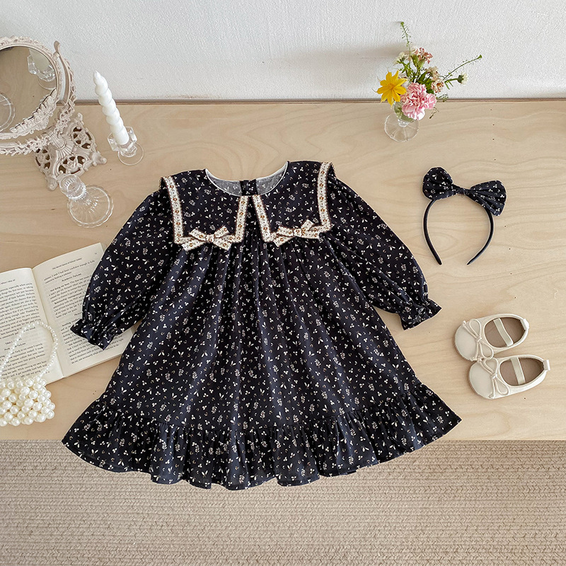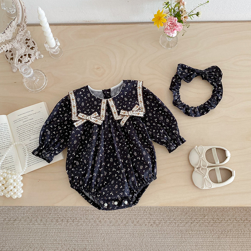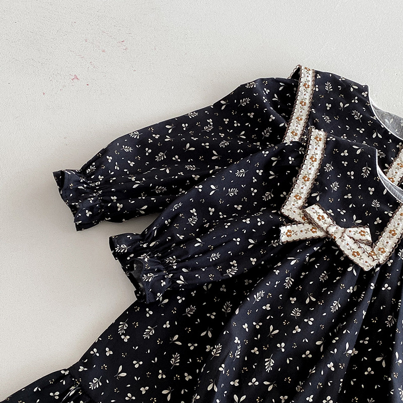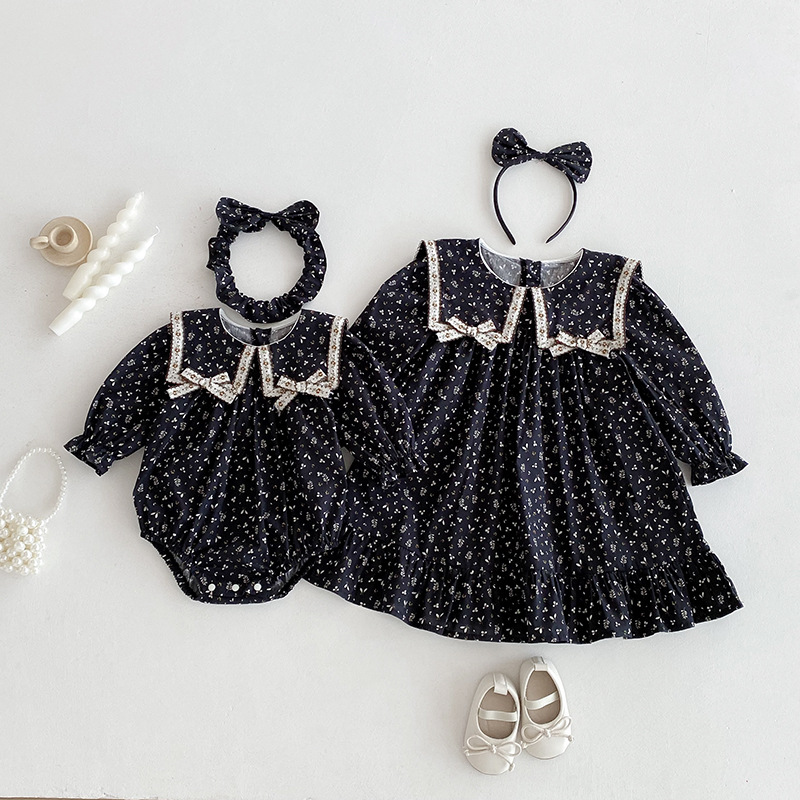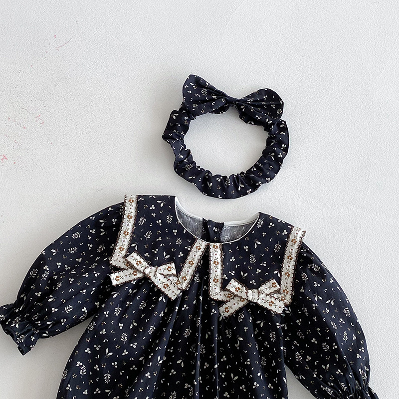 【BS285】韓版雙蝴蝶結小碎花長袖包屁衣小洋裝(送髮箍)(1色)