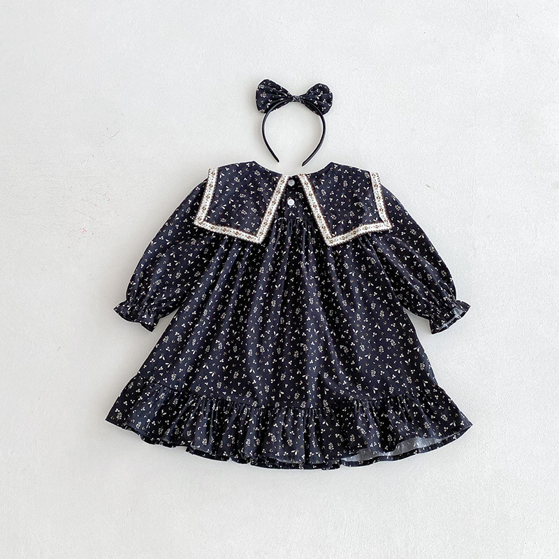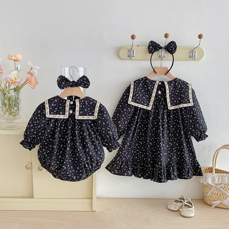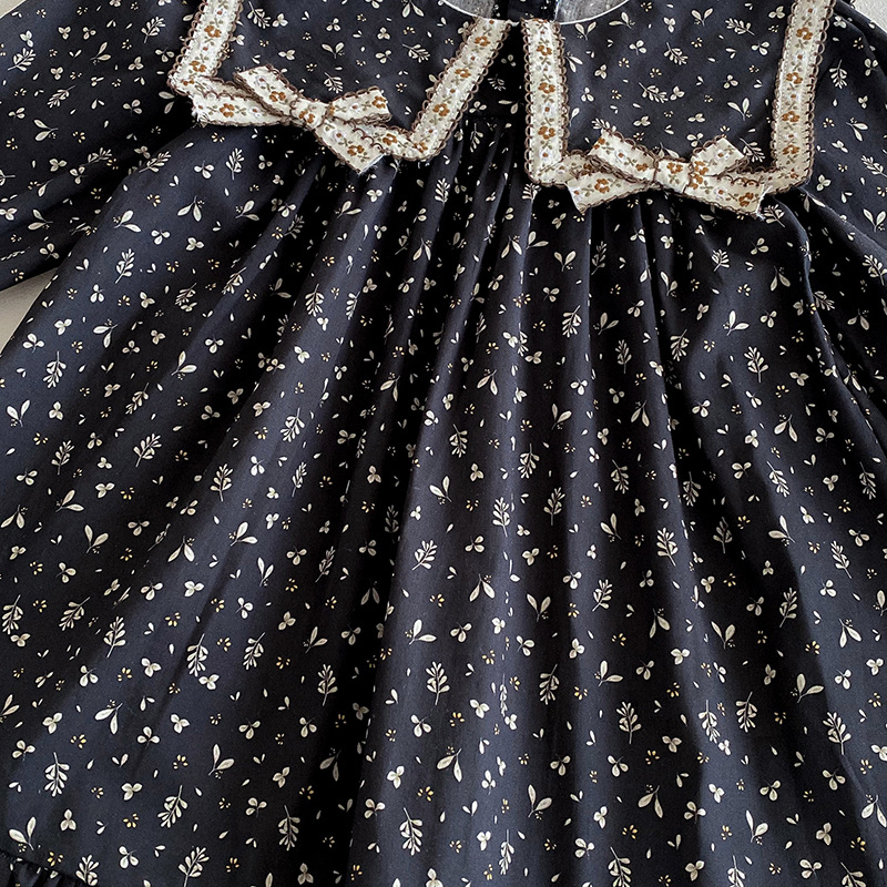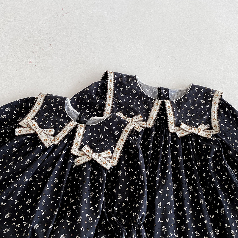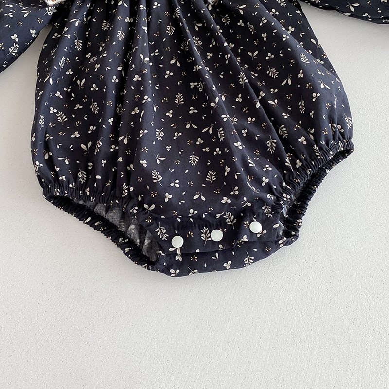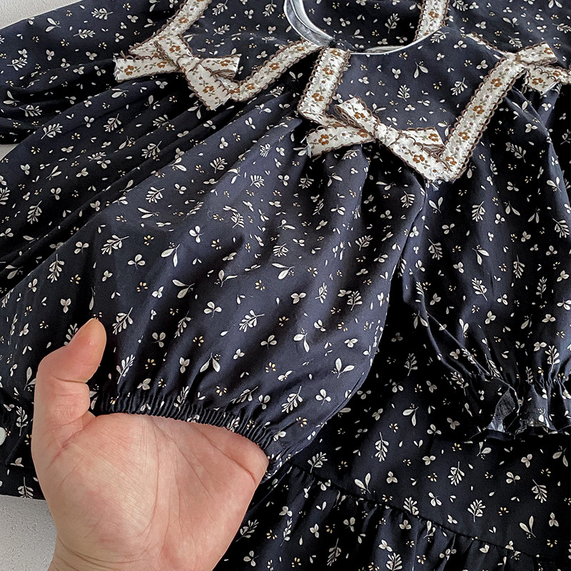 【BS285】韓版雙蝴蝶結小碎花長袖包屁衣小洋裝(送髮箍)(1色)