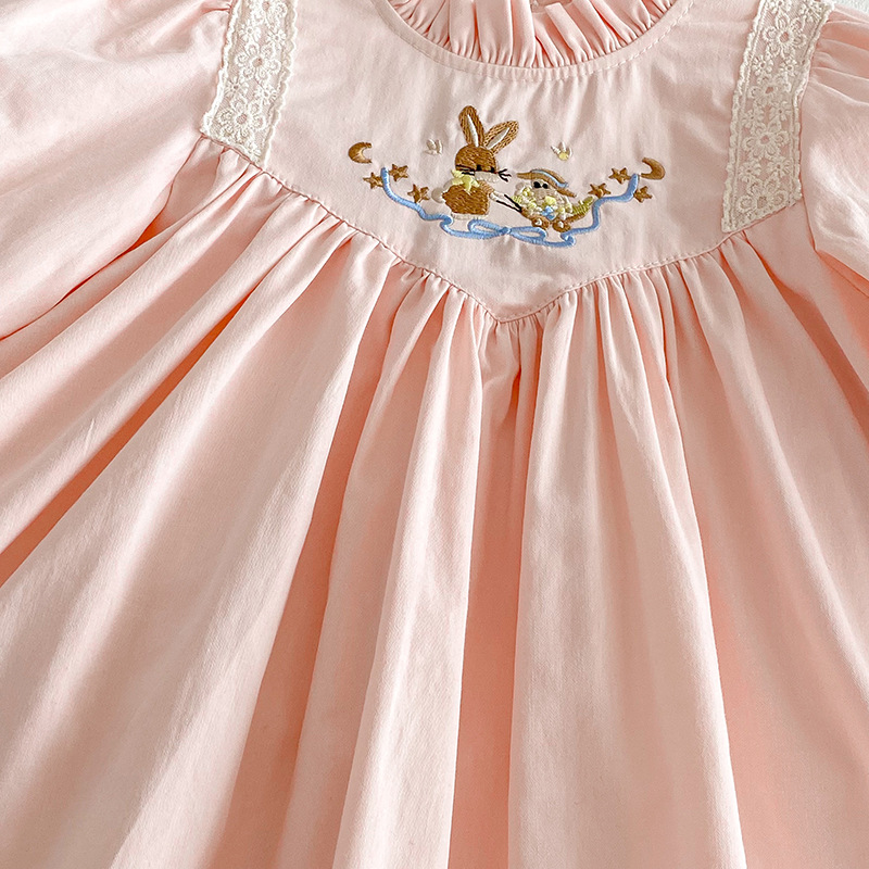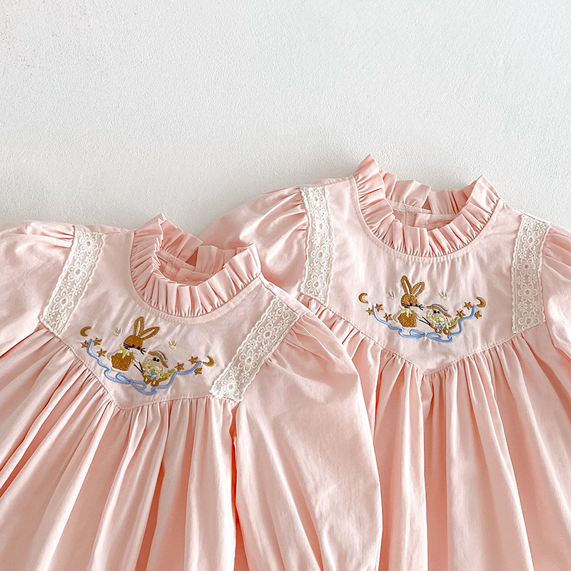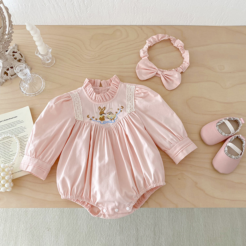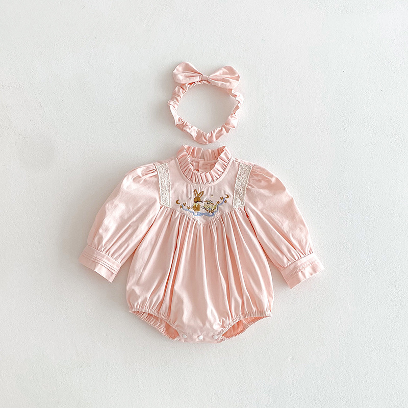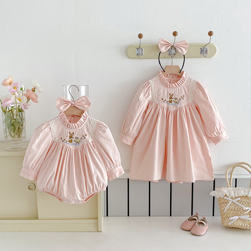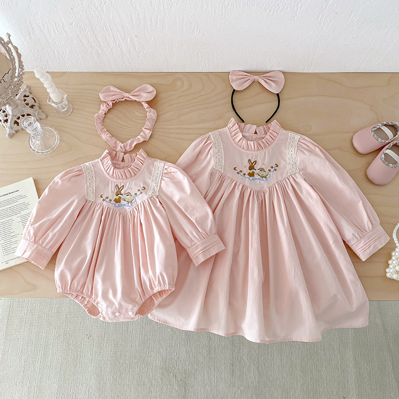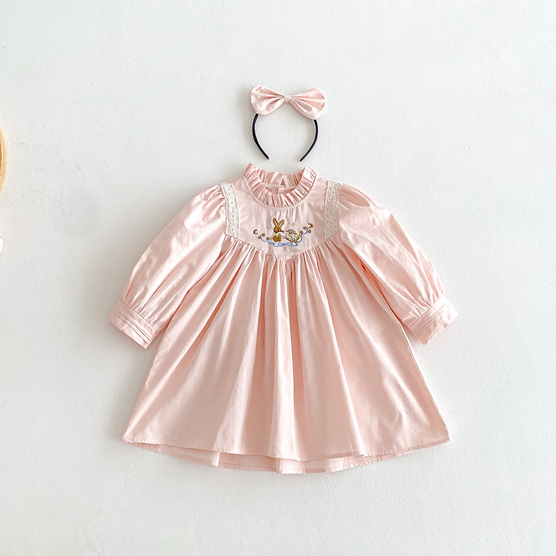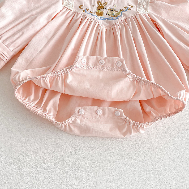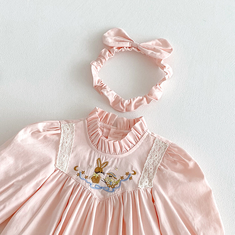 【BS287】韓版刺繡兔子長袖包屁衣小洋裝(送髮箍)(1色)