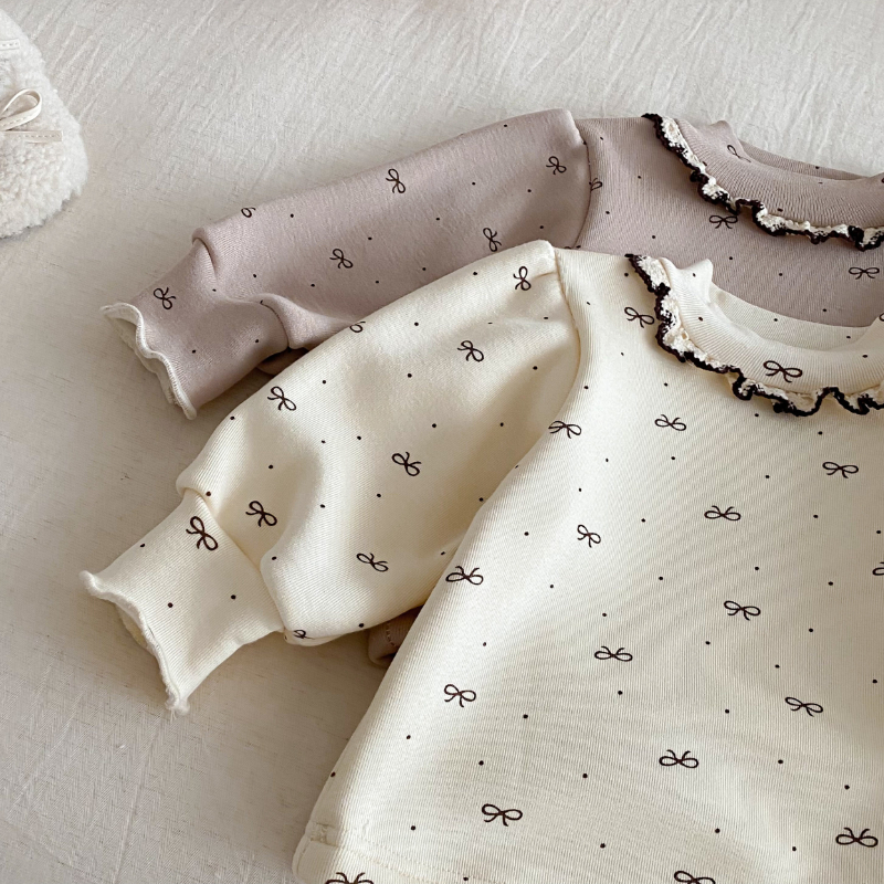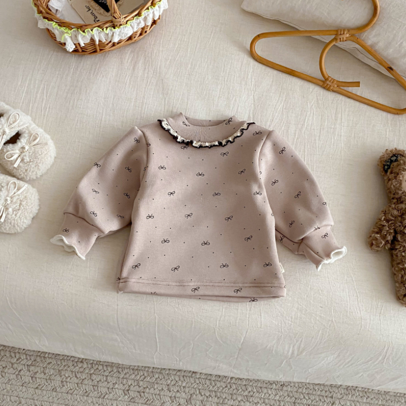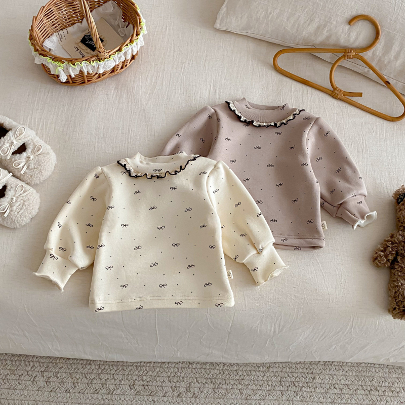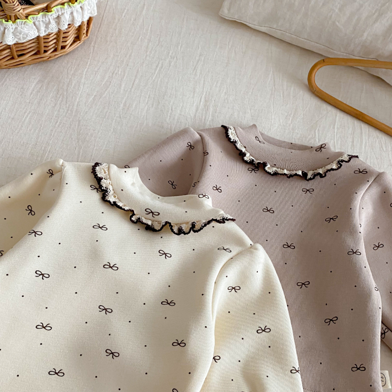 【BU235】蝴蝶花邊保暖長袖上衣(2色)