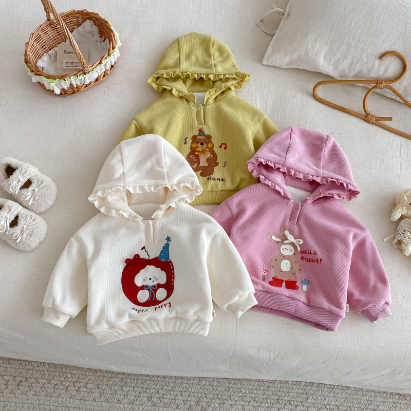 【BU241】可愛兔兔熊熊加厚長袖帽T(3色)