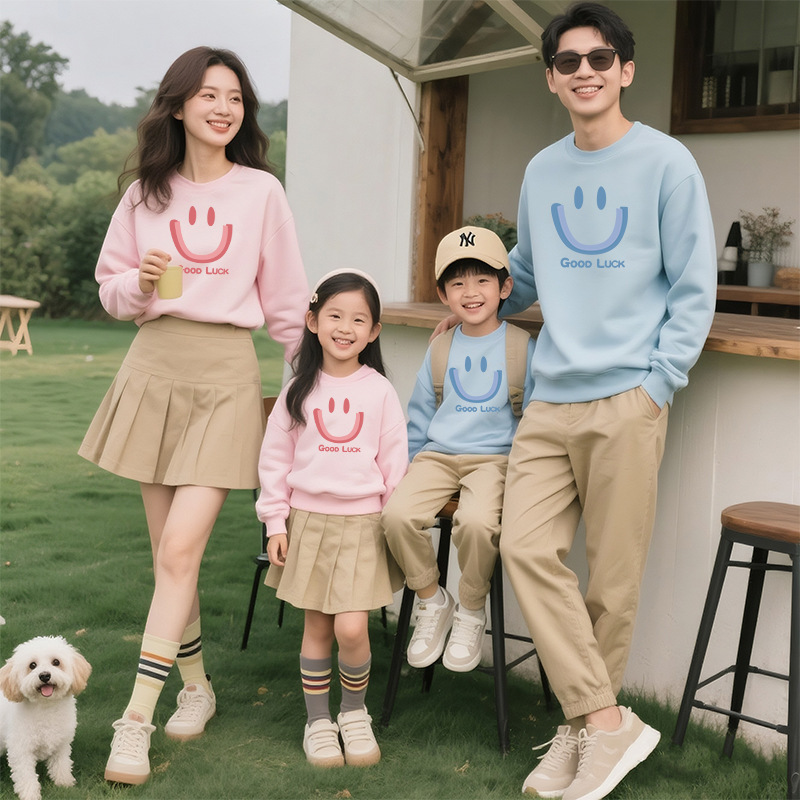【F192】日系粉藍大笑臉全家福親子長袖上衣(2色)