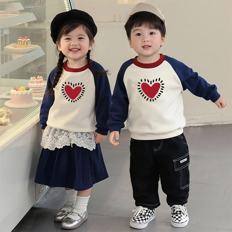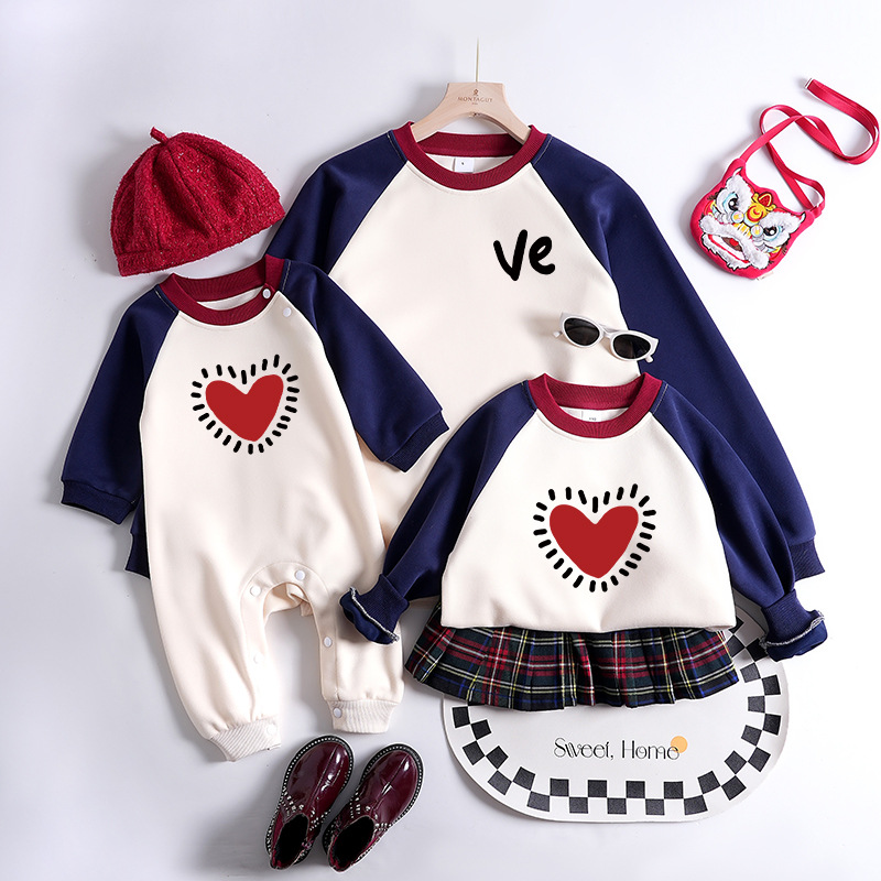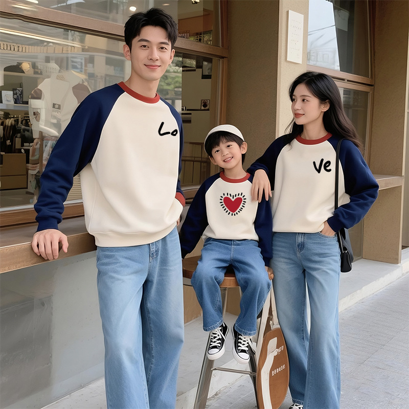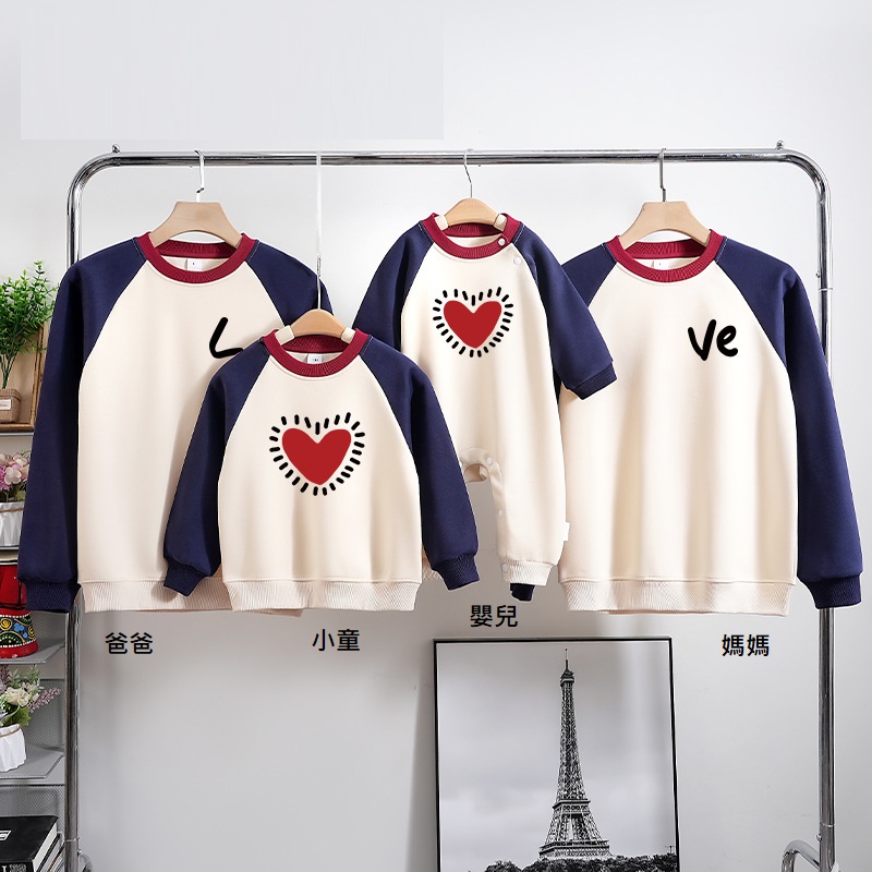 【F199】日系撞色LOVE愛心全家福親子長袖上衣(1色)