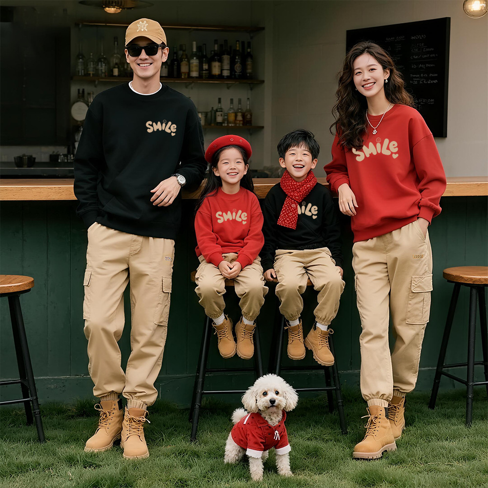 【F200】日系大字母笑臉全家福親子長袖上衣(2色)