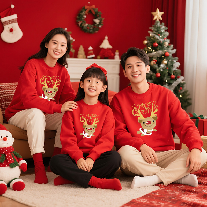 【F203】日系聖誕馴鹿全家福親子長袖上衣(1色)