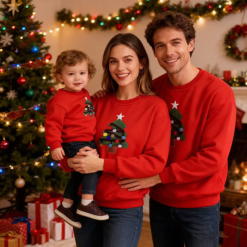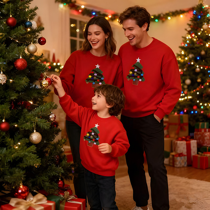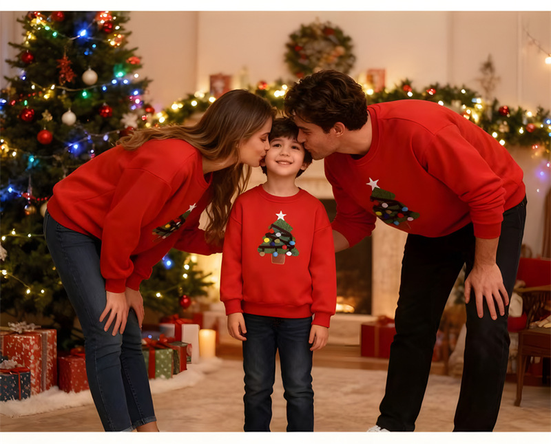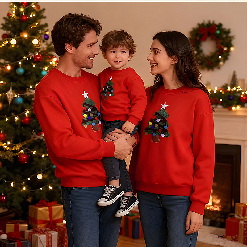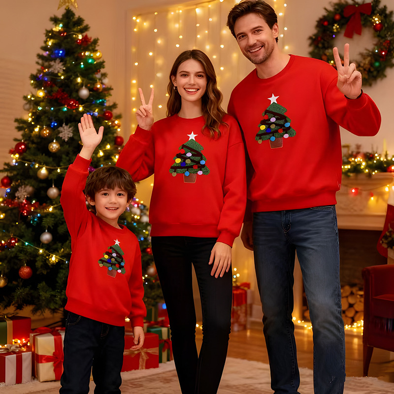 【F098】歐美毛絨聖誕樹全家福親子長袖上衣(1色)