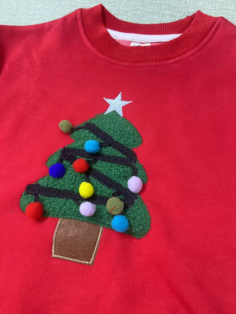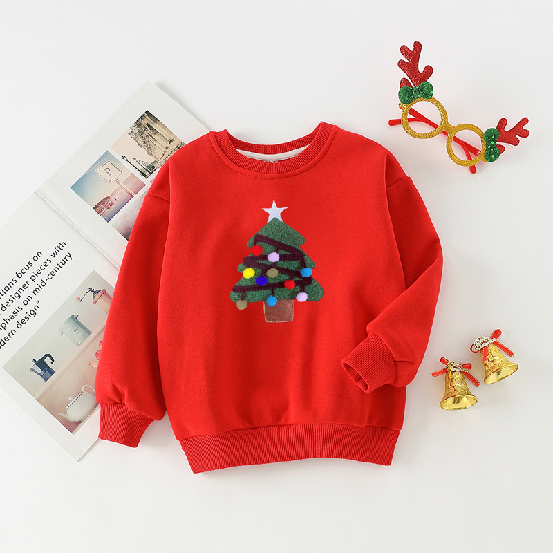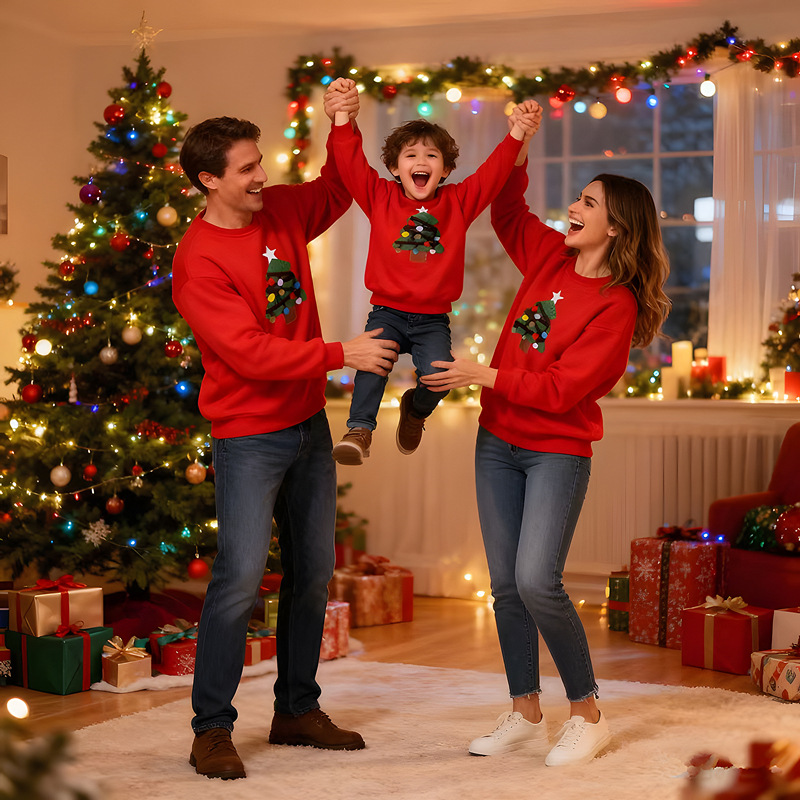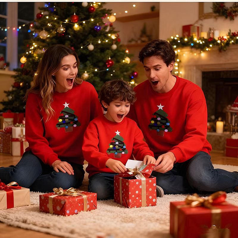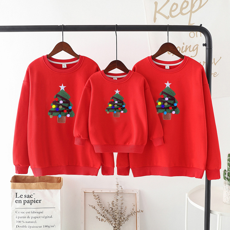 【F098】歐美毛絨聖誕樹全家福親子長袖上衣(1色)