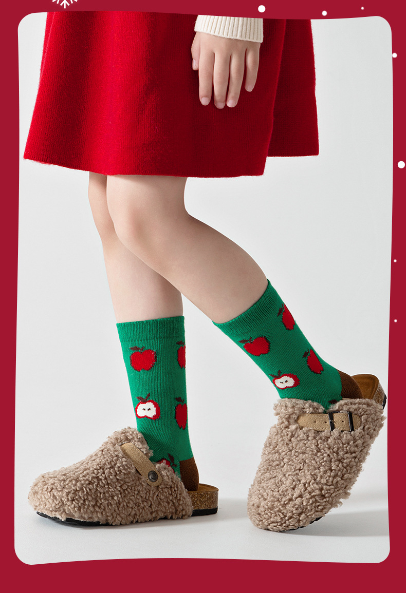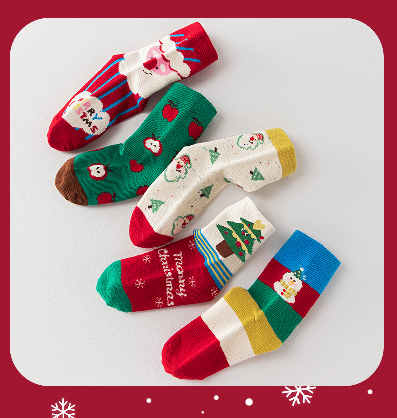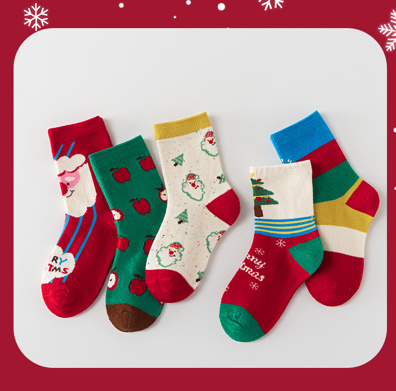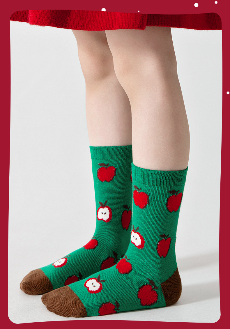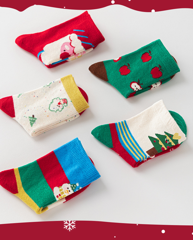 【SB092】童襪|韓版蘋果聖誕樹中筒襪(5雙1組)