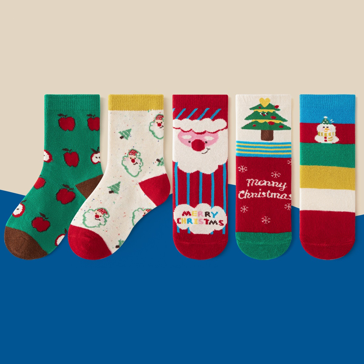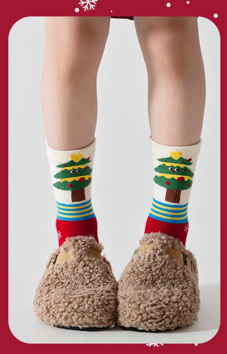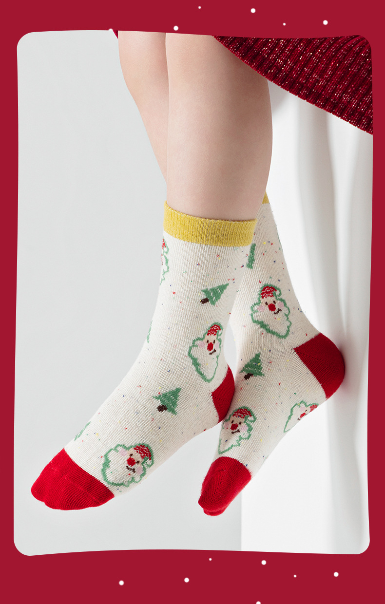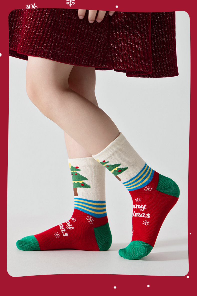 【SB092】童襪|韓版蘋果聖誕樹中筒襪(5雙1組)