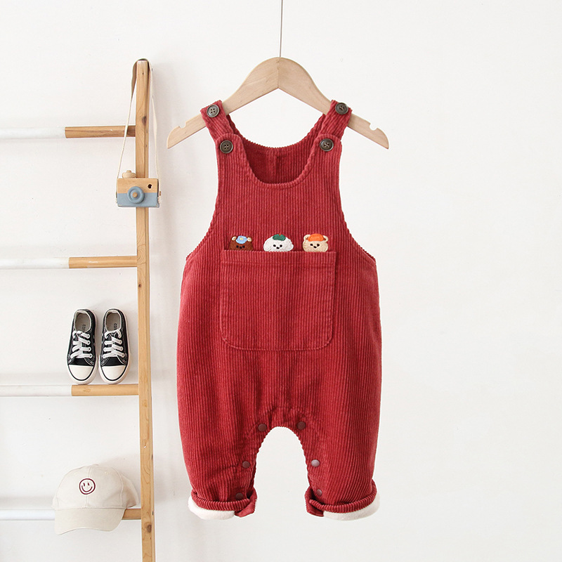 【BR014】三隻熊熊躲貓貓燈芯絨吊帶褲(2色)