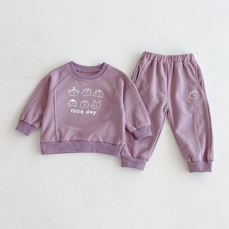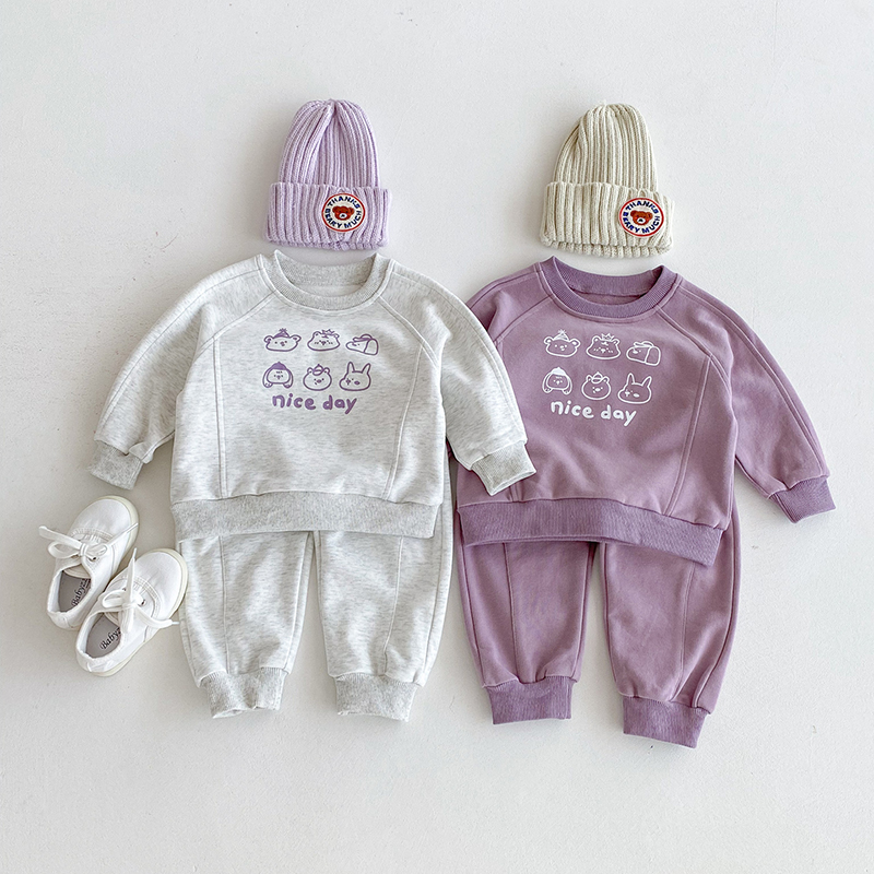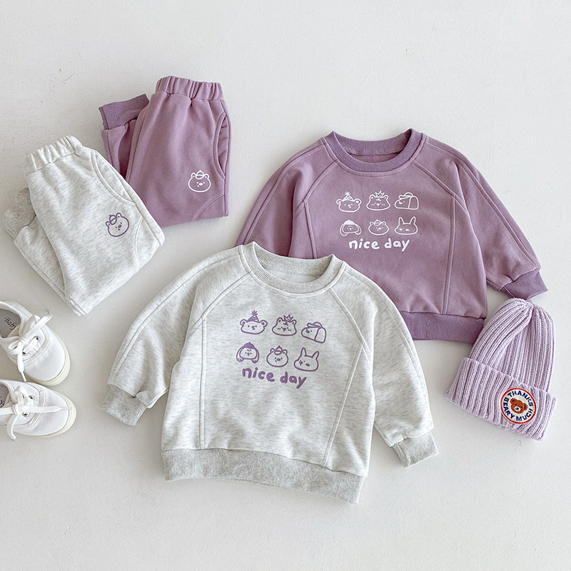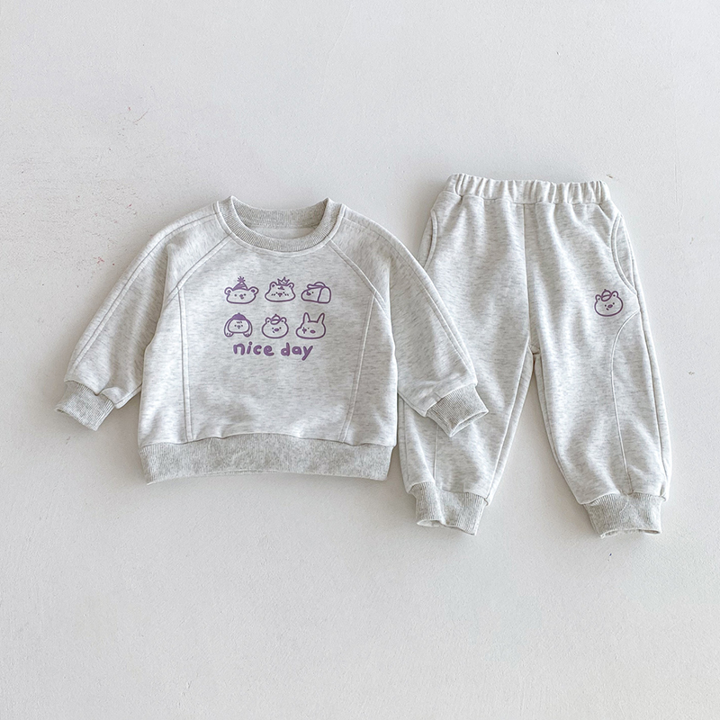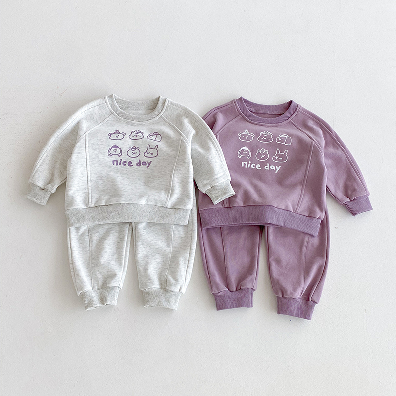 【BE152】日系字母小動物長袖長褲套裝(2色)