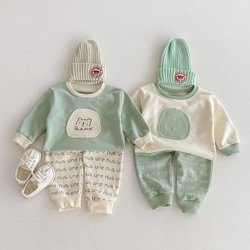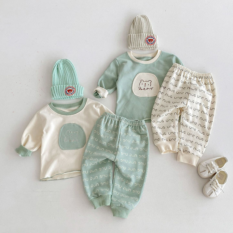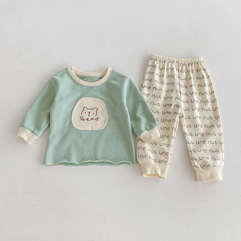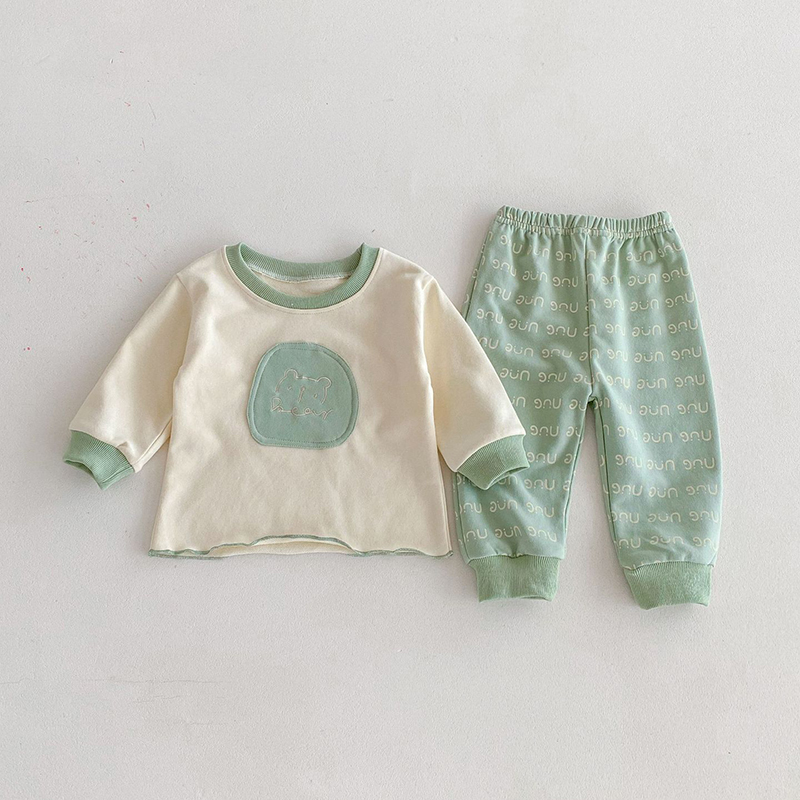 【BE154】日系字母小動物長袖長褲套裝(2色)