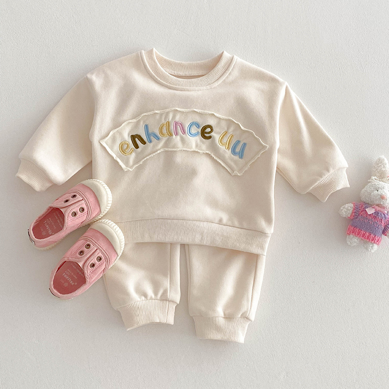 【BE165】日系刺繡彩色字母長袖長褲套裝