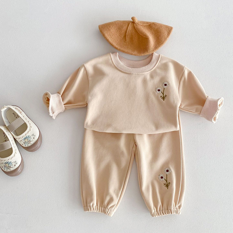 【BE170】日系刺繡小雛菊長袖長褲套裝