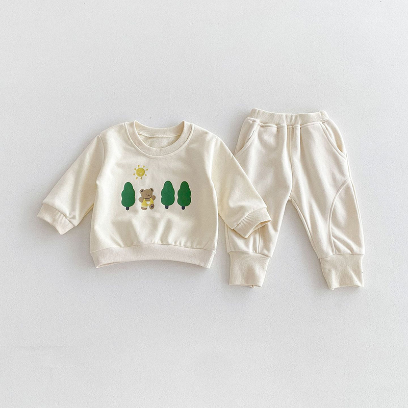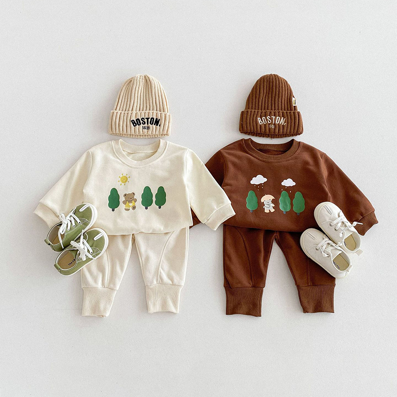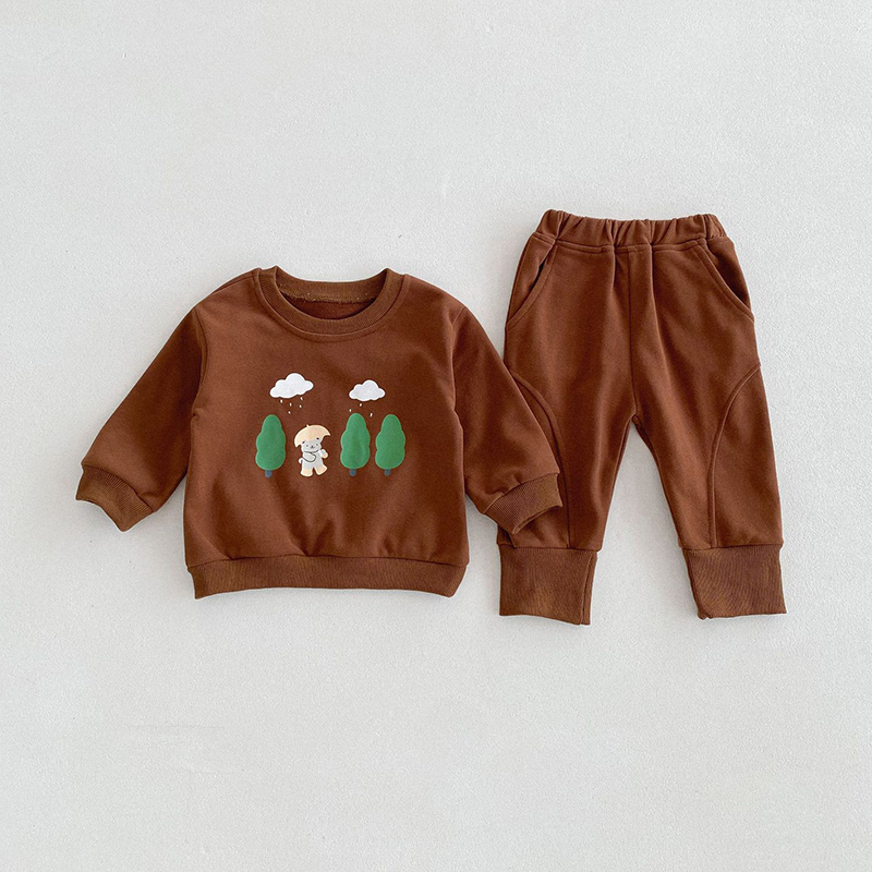【BE178】日系晴雨天森林小熊長袖長褲套裝(2色)