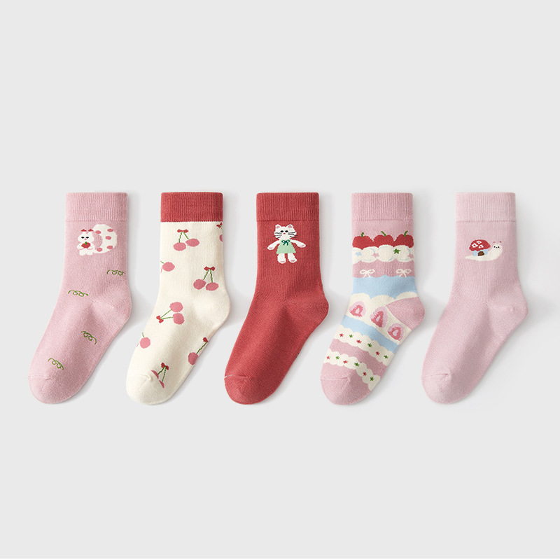 【SB117】童襪|日系櫻桃慕斯加厚中筒襪(5雙1組)