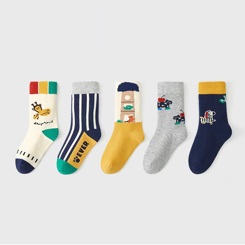 【SB122】童襪|日系藍色精靈加厚中筒襪(5雙1組)