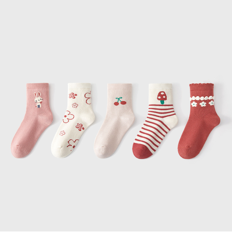 【SB125】童襪|日系冬日櫻花加厚中筒襪(5雙1組)
