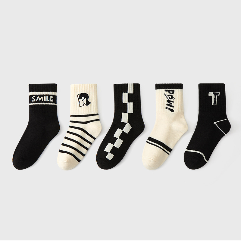 【SB132】童襪|美式黑白球隊加厚中筒襪(5雙1組)