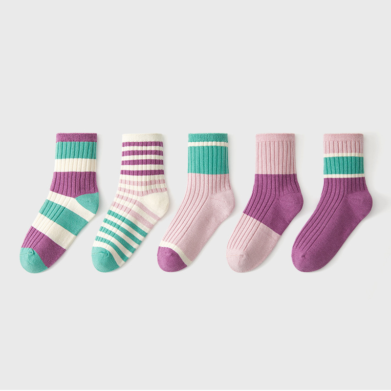 【SB138】童襪|美式芋泥紫醬加厚中筒襪(5雙1組)