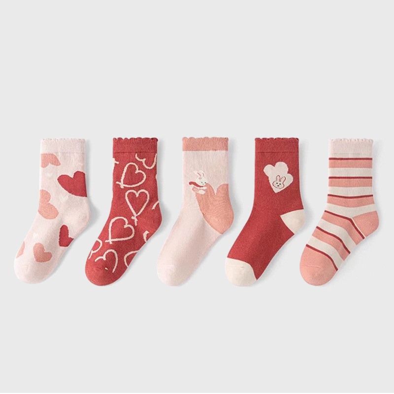 【SB144】童襪|美式甜兔愛心加厚中筒襪(5雙1組)