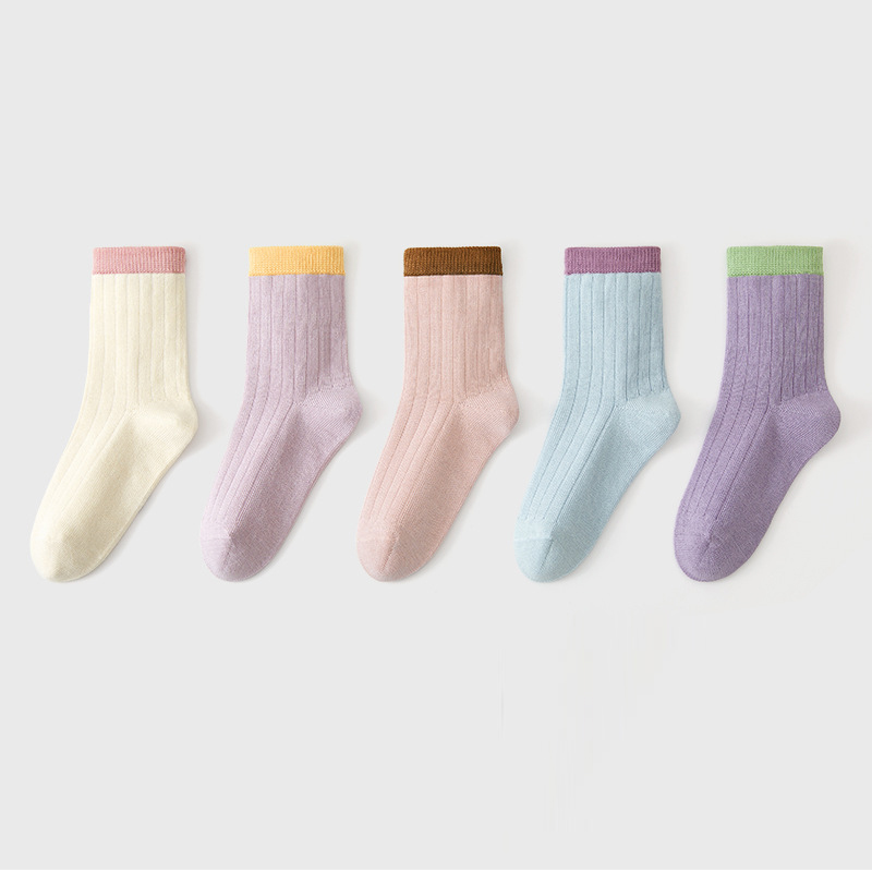 【SB145】童襪|日式馬卡龍撞色加厚中筒襪(5雙1組)