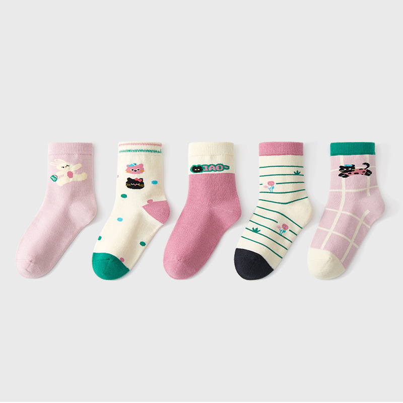 【SB148】童襪|美式小貓日記加厚中筒襪(5雙1組)