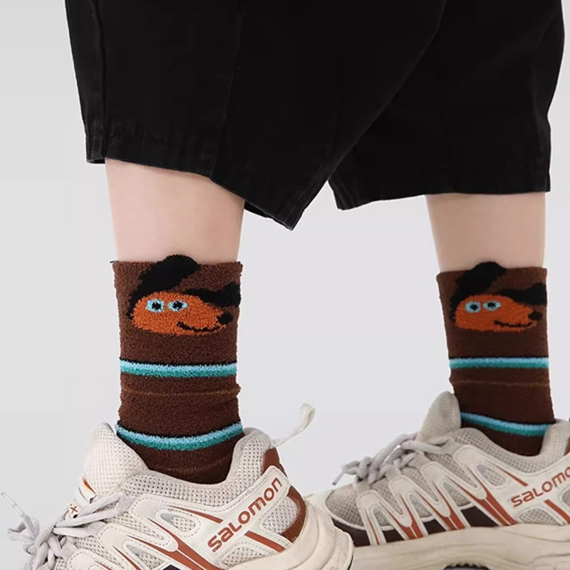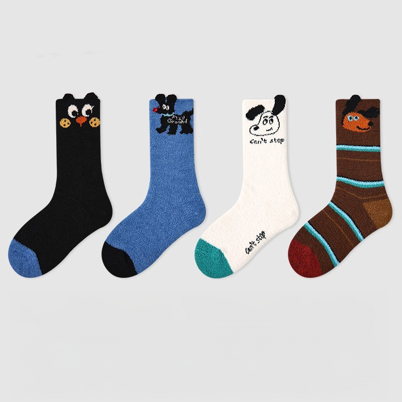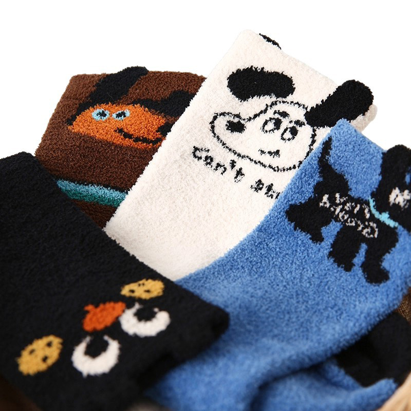 【SB158】童襪|美式快樂小狗加厚珊瑚絨中筒襪(4雙1組)