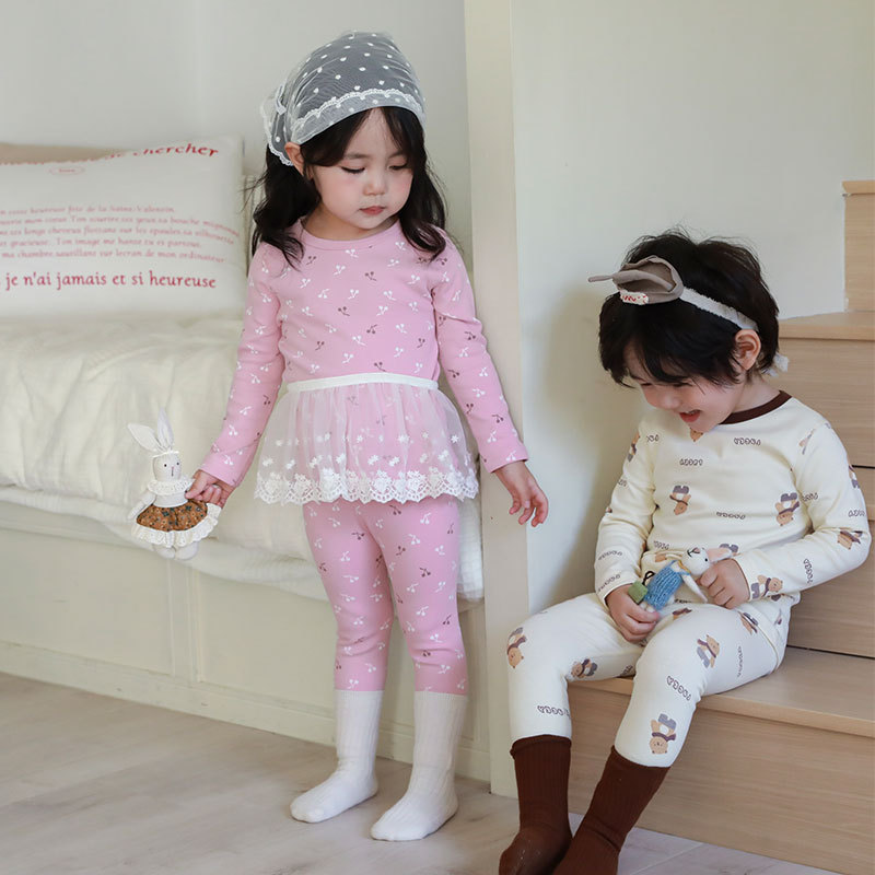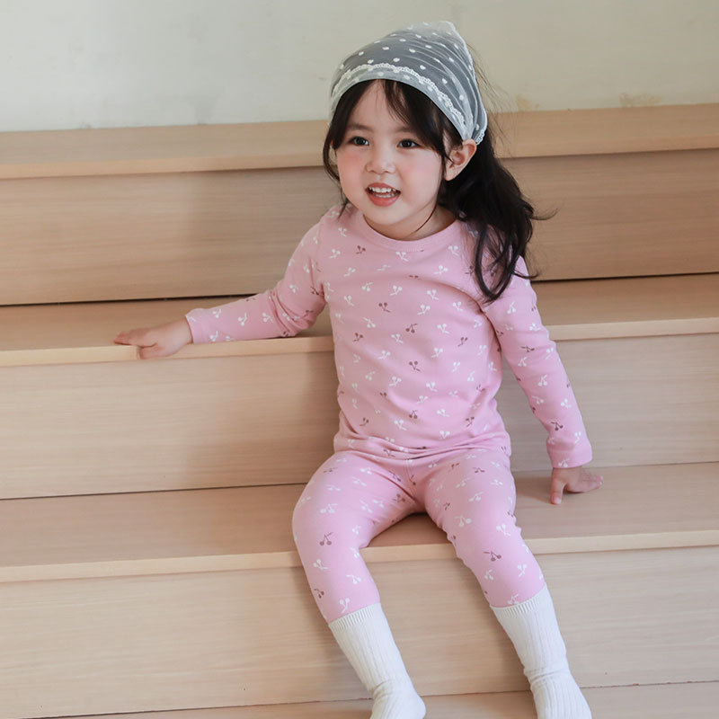 【HB002】日系白色小櫻桃成套睡衣(長袖/長褲)