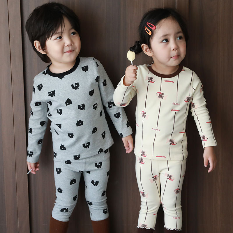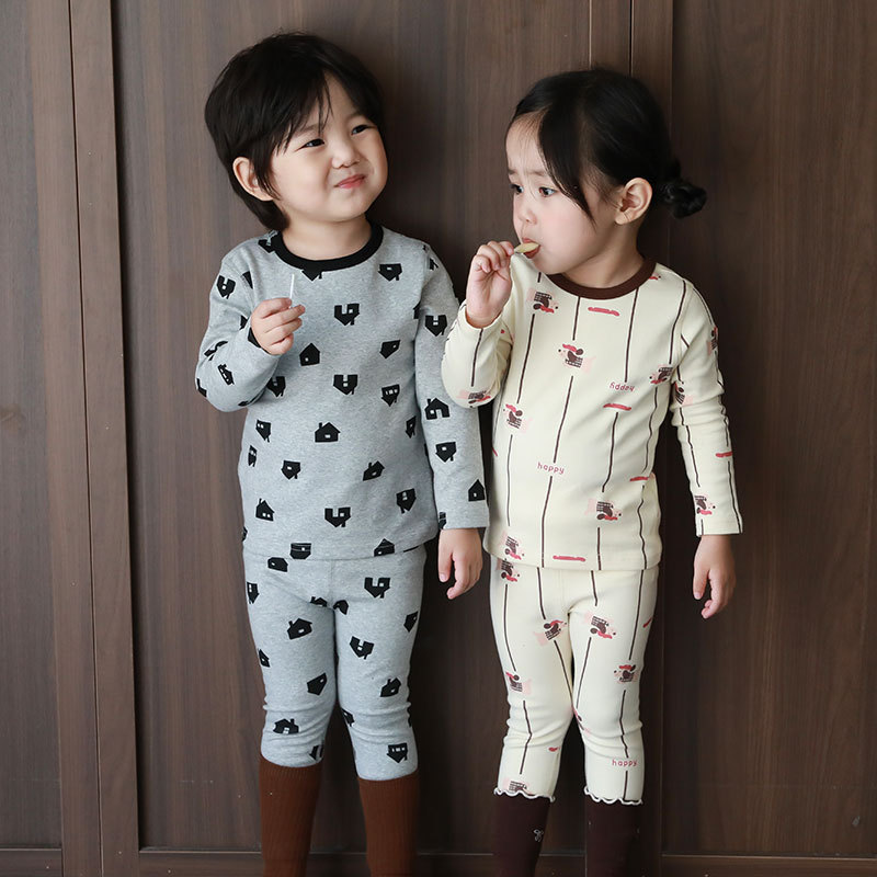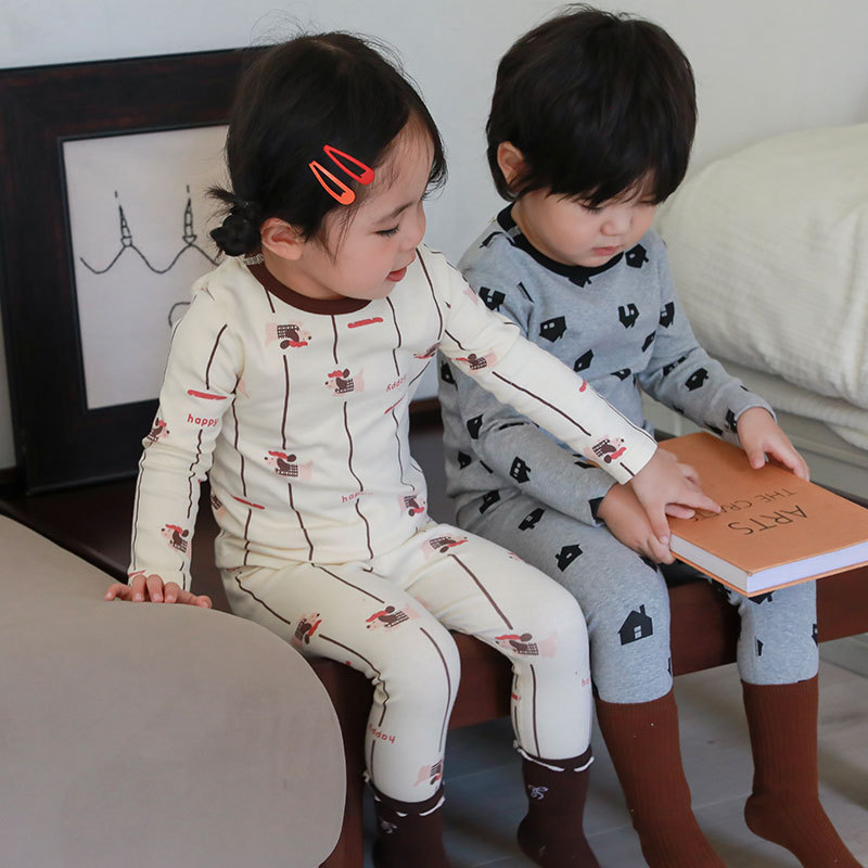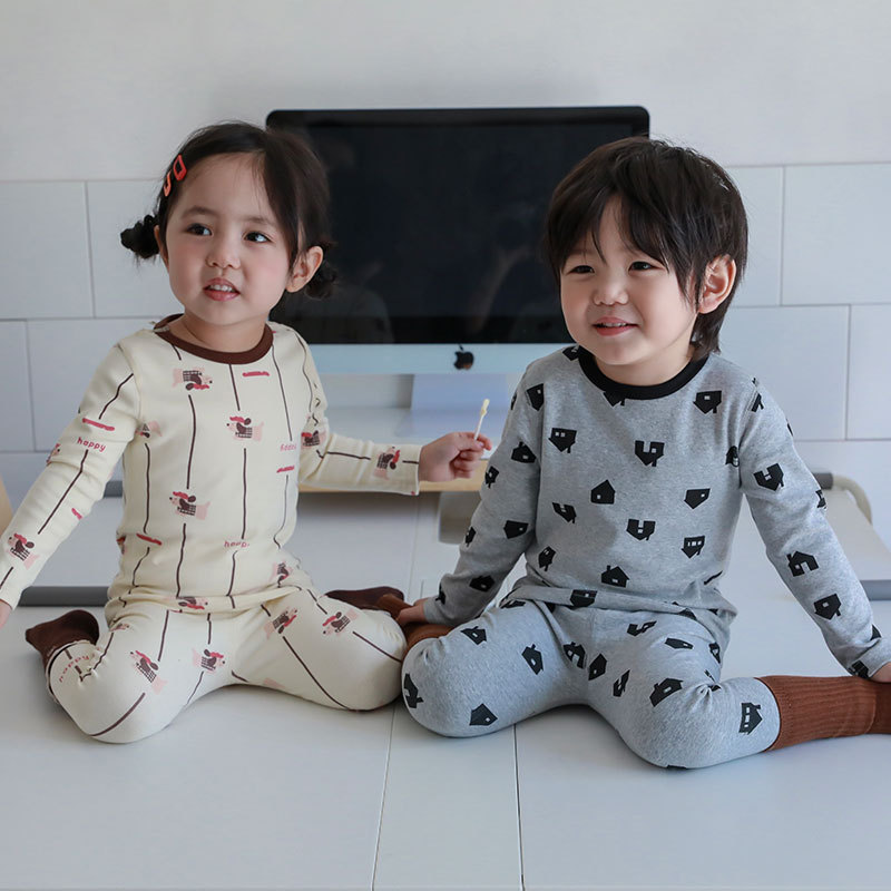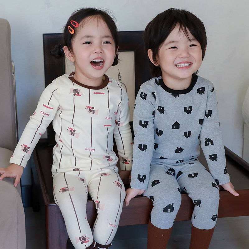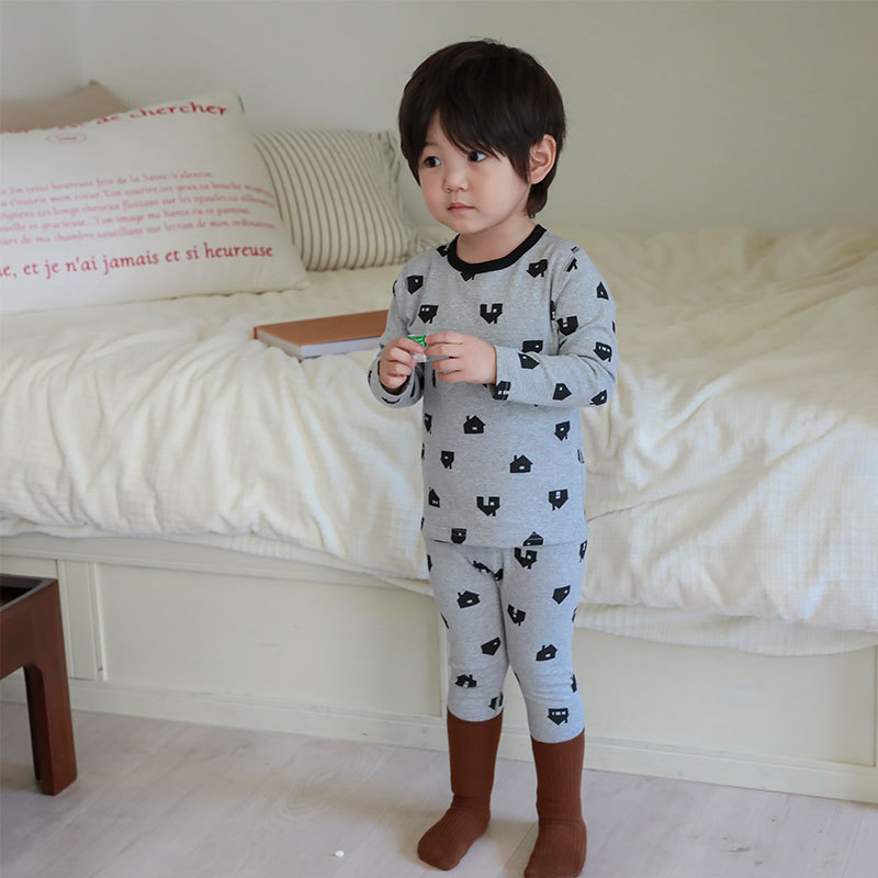 【HB005】日系灰色小房子成套睡衣(長袖/長褲)