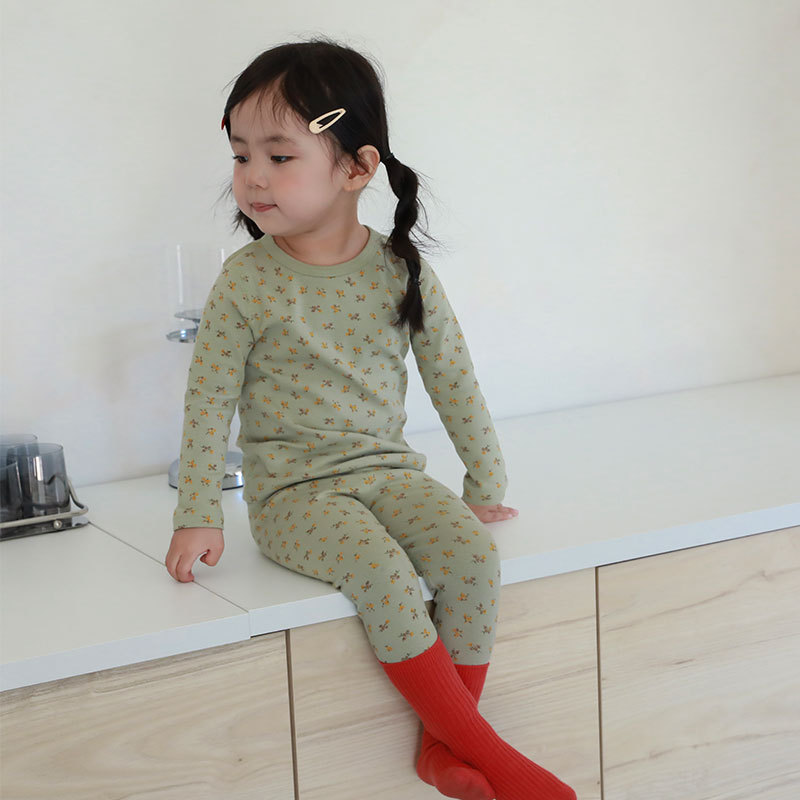【HB008】日系綠色小花花成套睡衣(長袖/長褲)