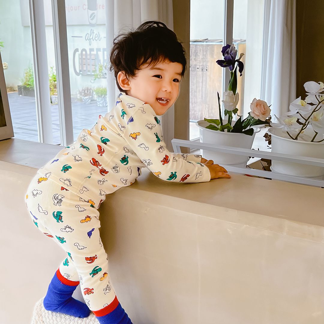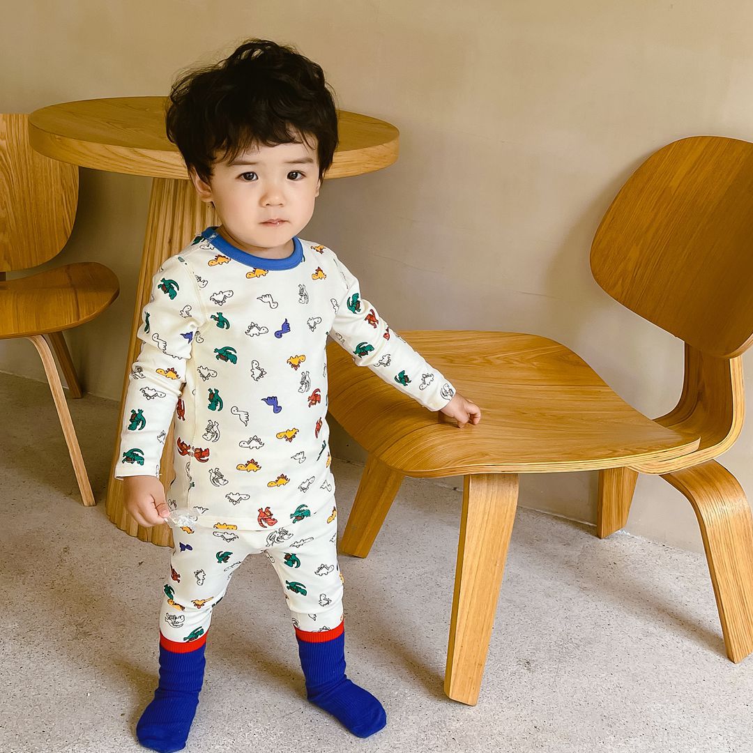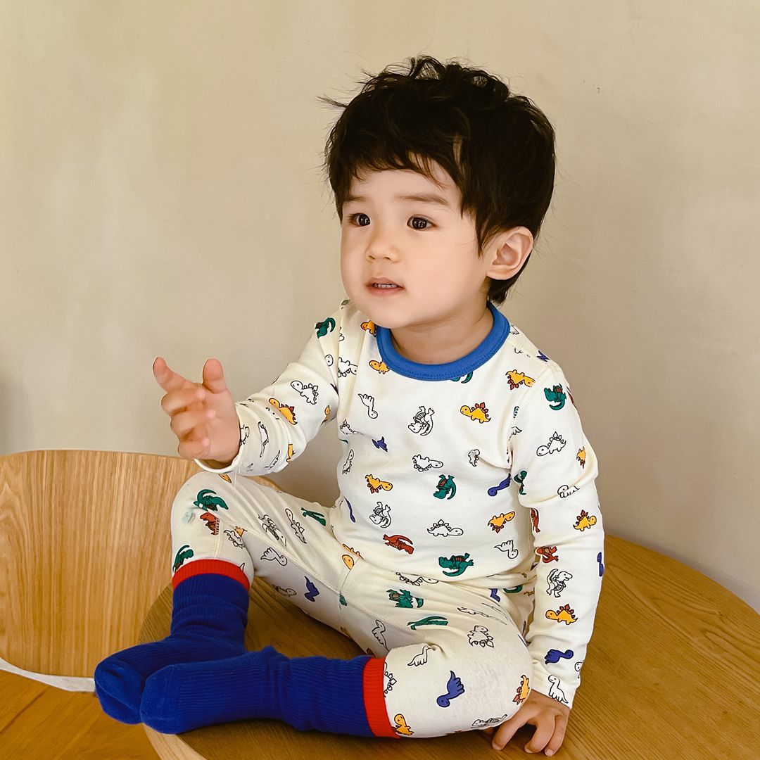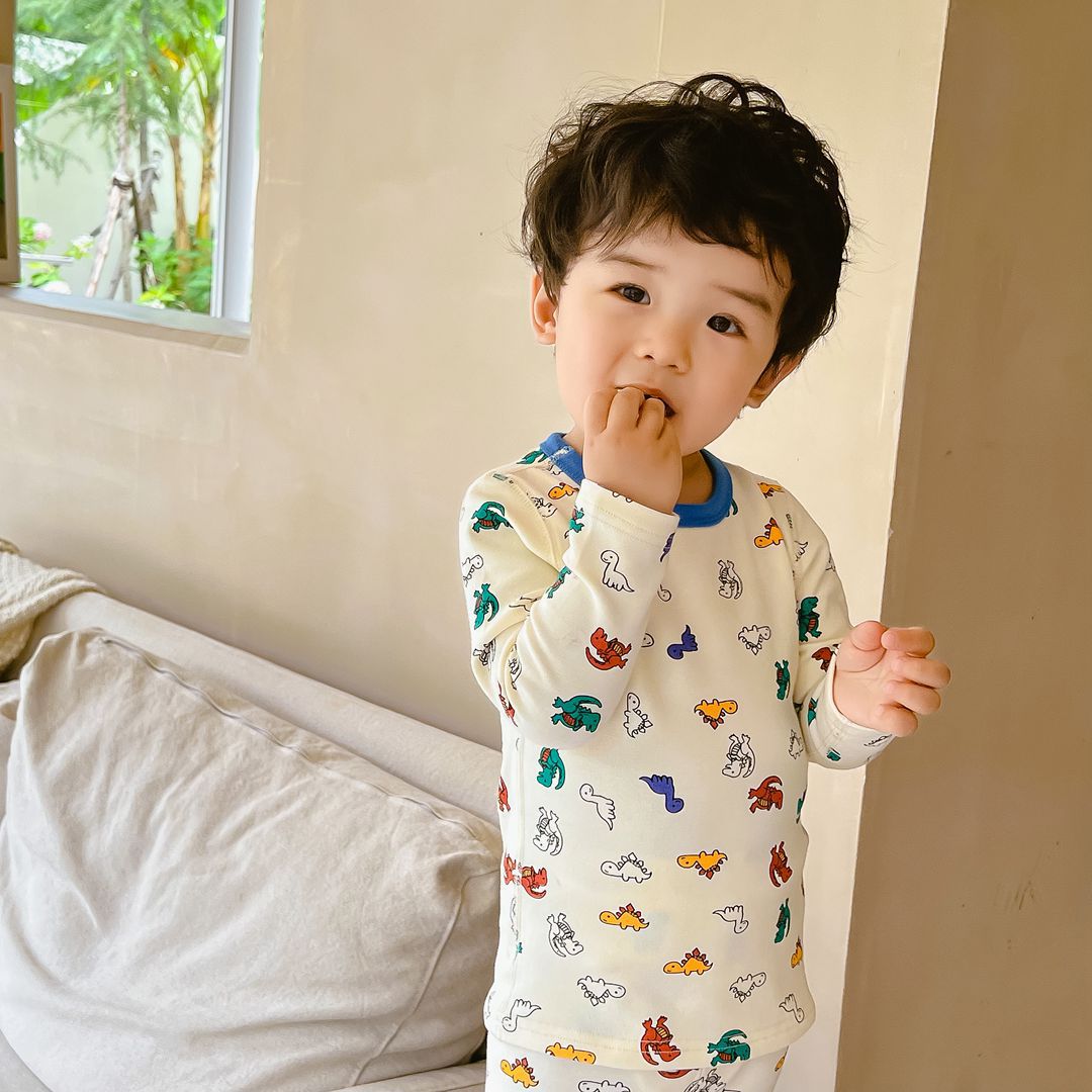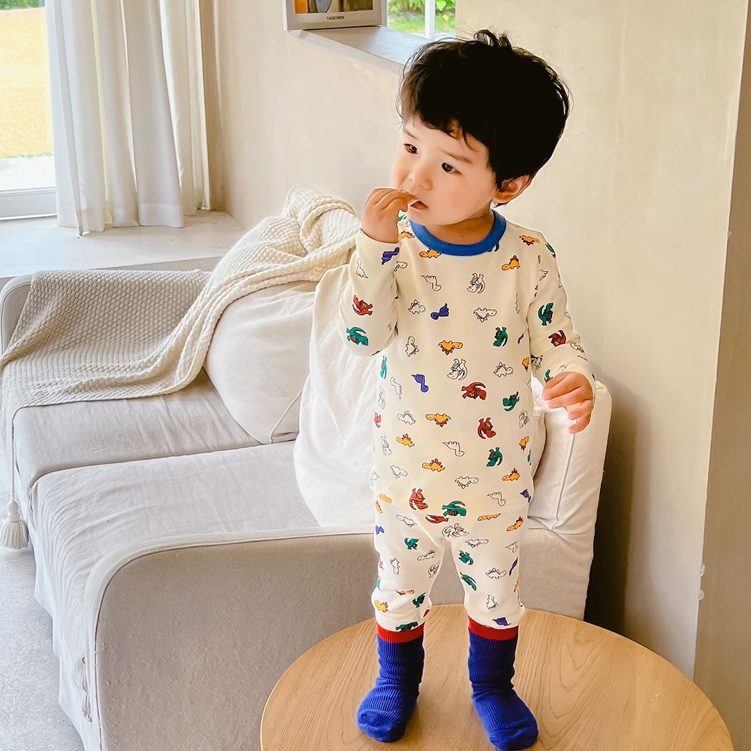 【HB016】繽紛米色小恐龍成套睡衣(長袖/長褲)