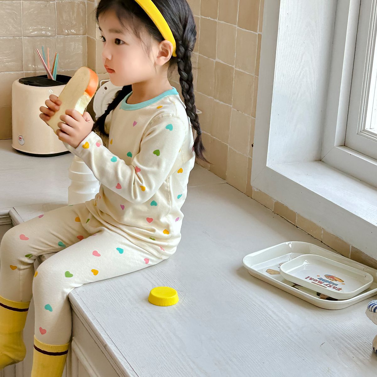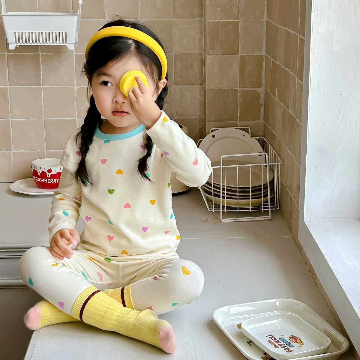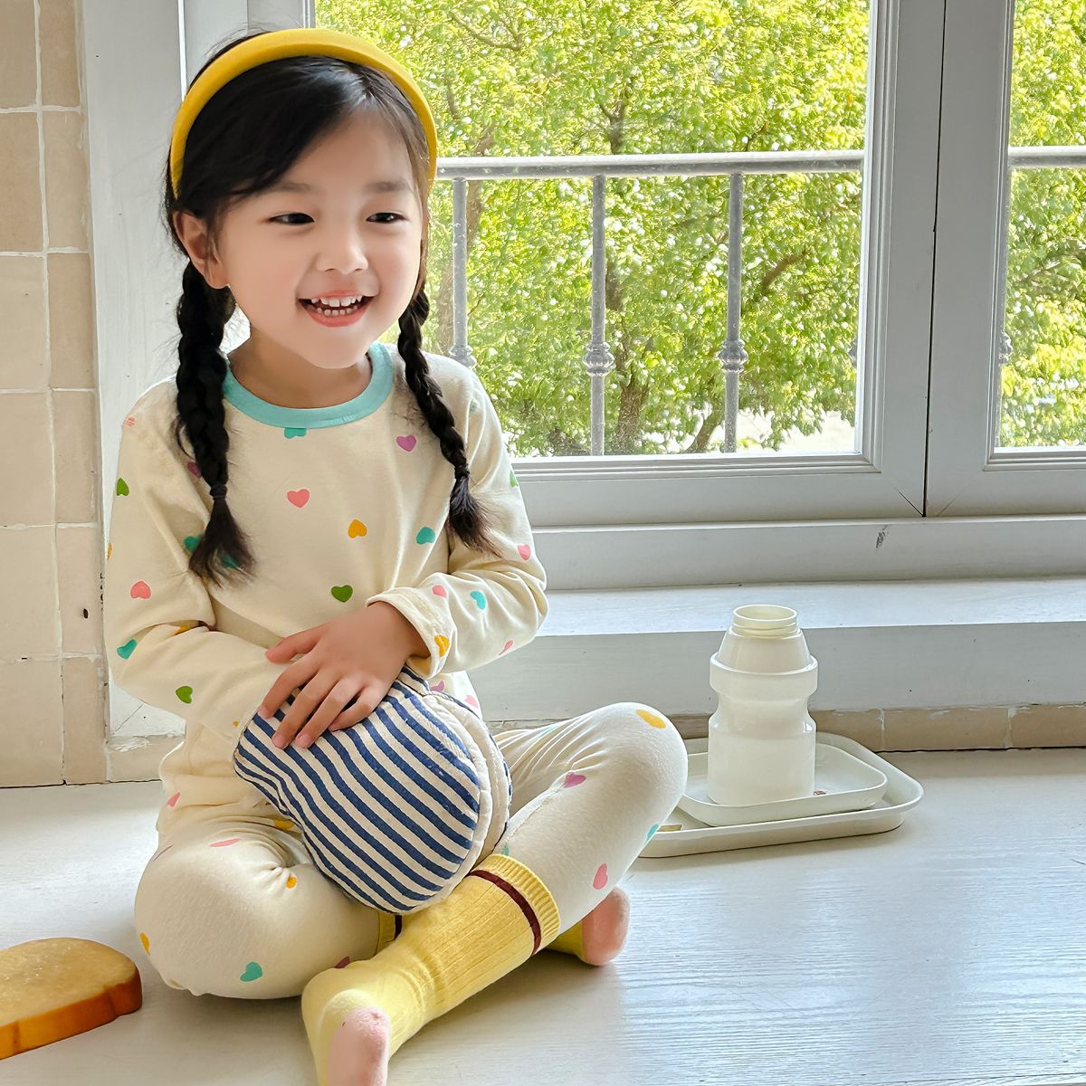 【HB023】日系彩色愛心成套睡衣(長袖/長褲)