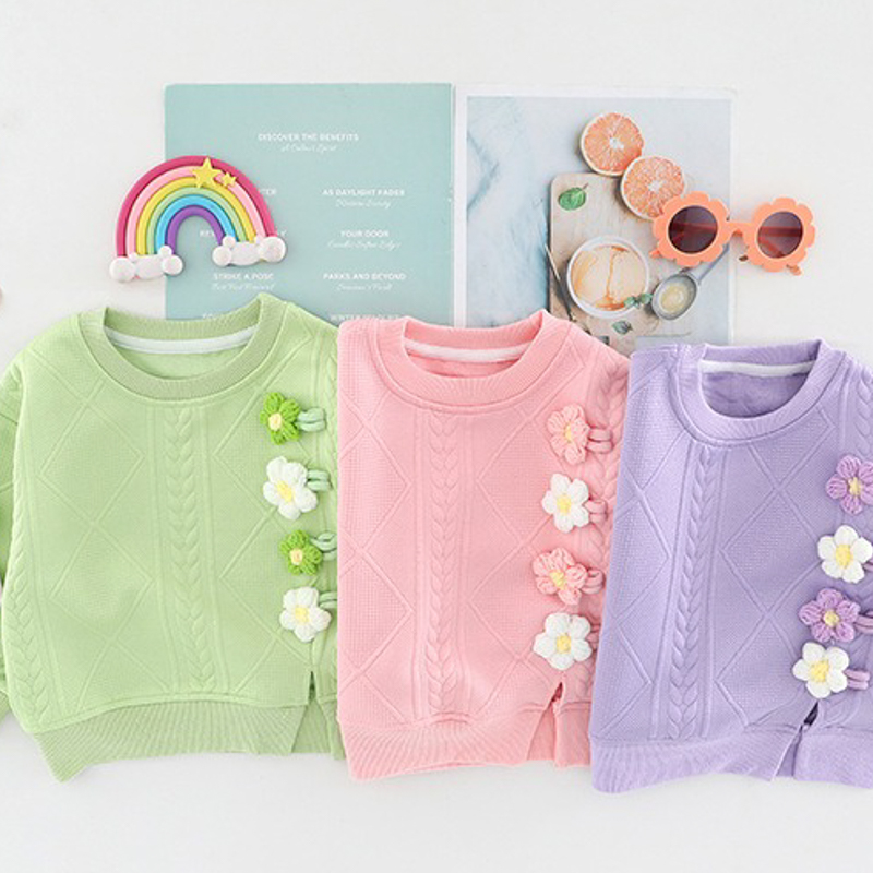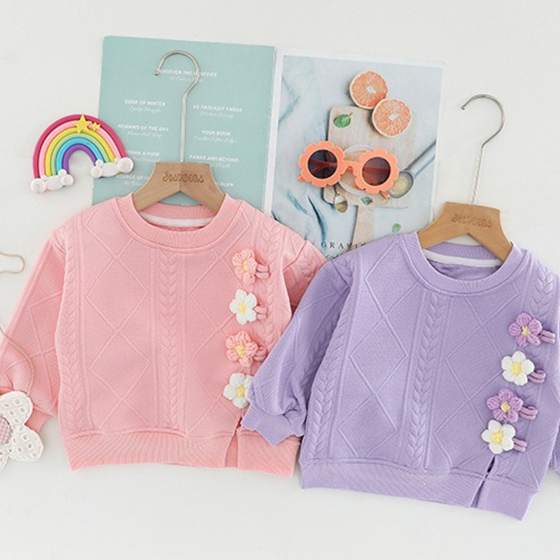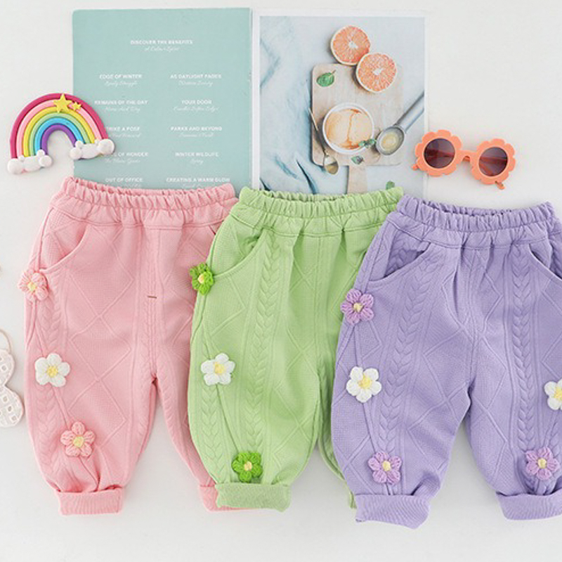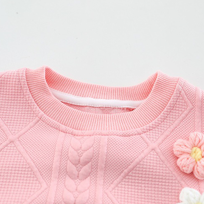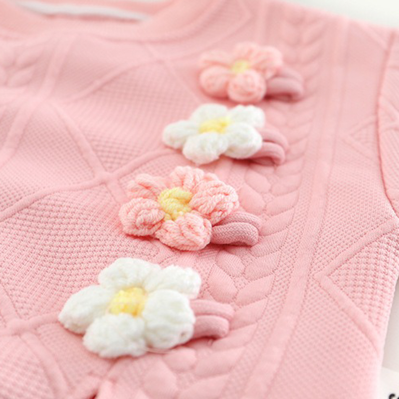 【BE195】立體三朵小花長袖長褲套裝 (3色)