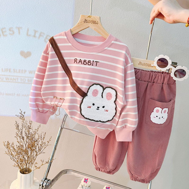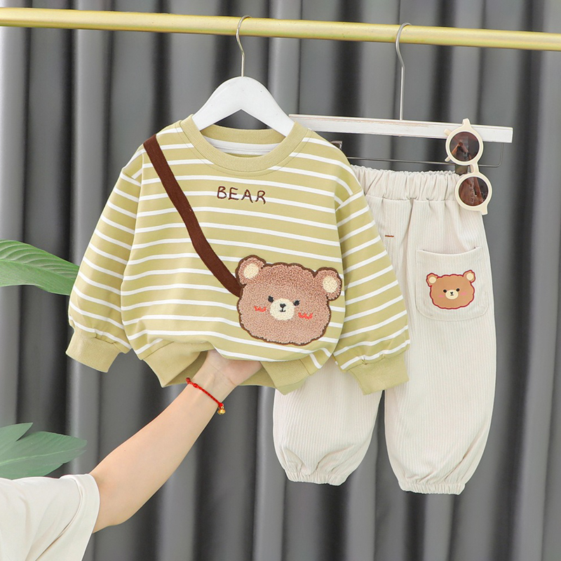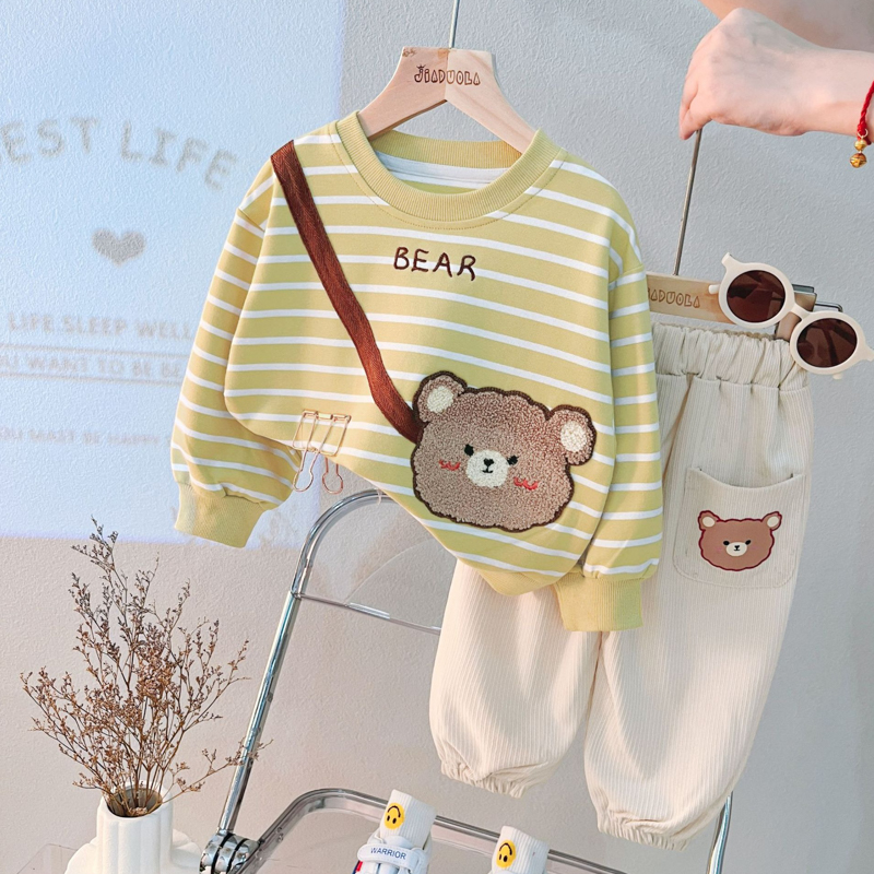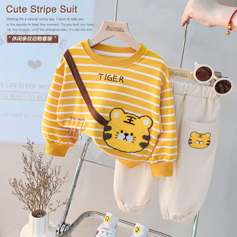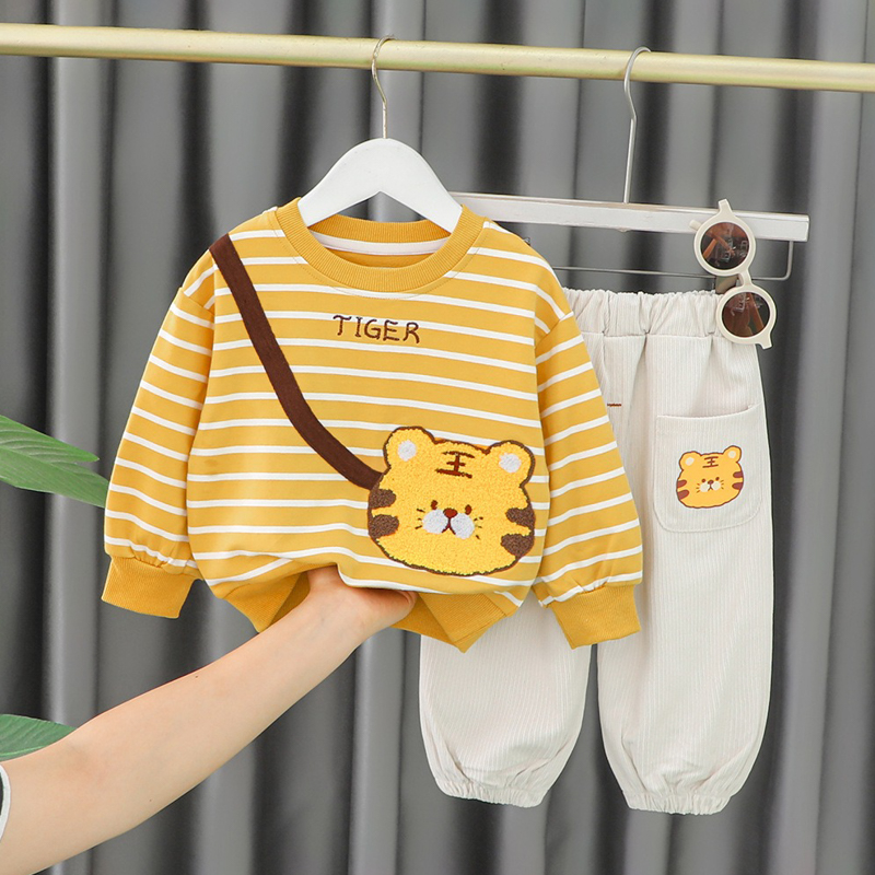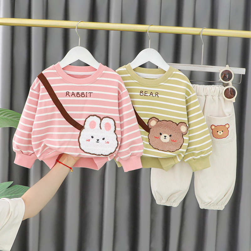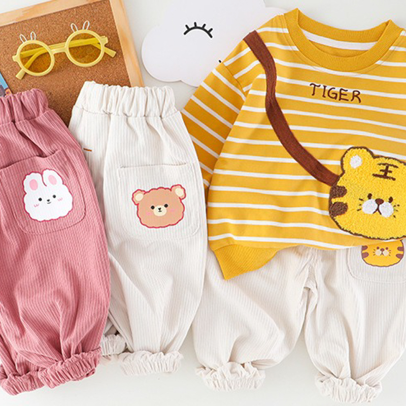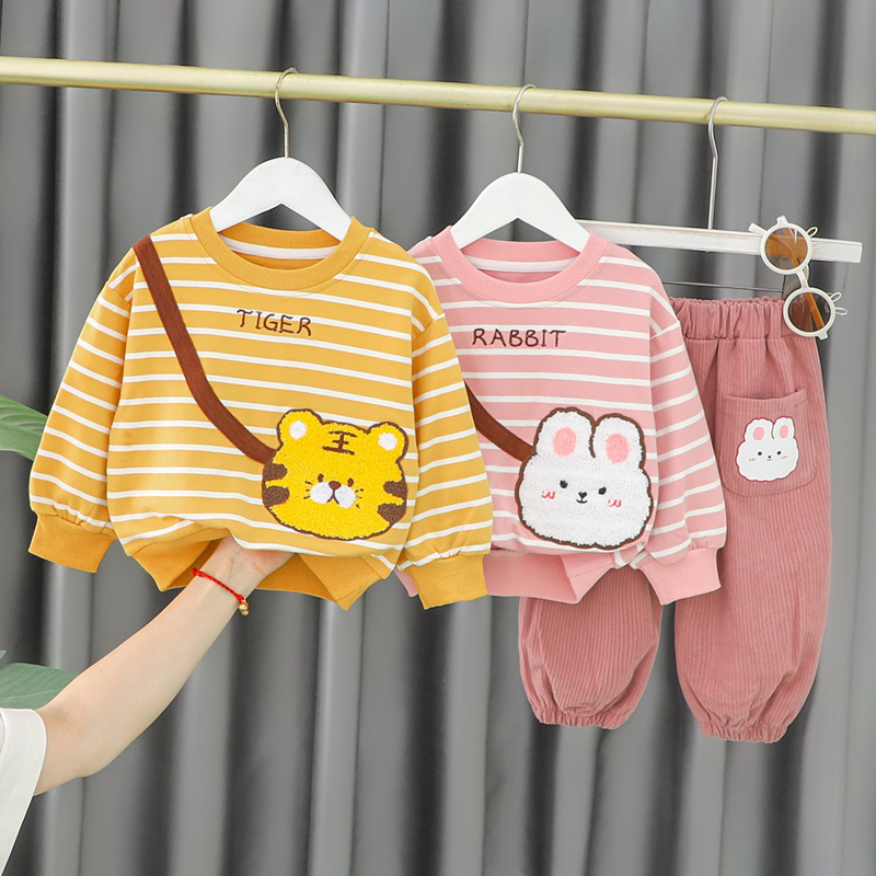 【BE198】假包包小老虎兔兔熊熊長袖長褲套裝 (3色)